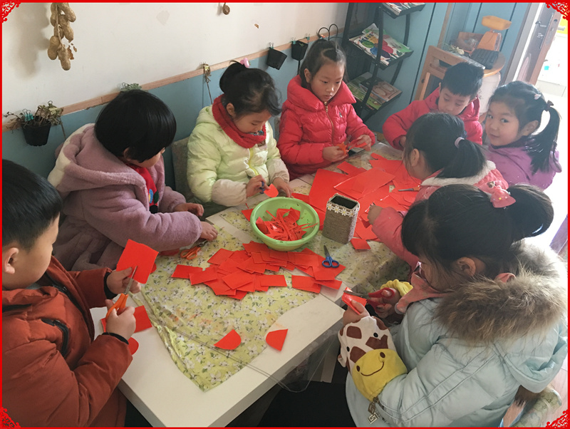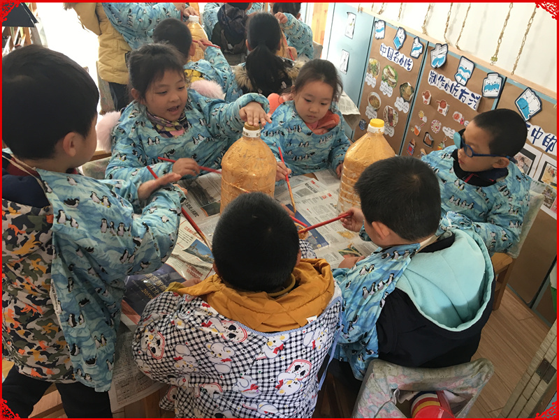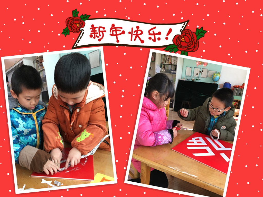 我们用报纸卷成“福”字,再用乳胶粘上面纸,最后用金色颜料刷上颜色,用金色粉末点缀一下,喜庆的“福”字就完成了。我们在给油桶刷上金灿灿的颜料,还剪了好多红纸片,猜猜我们会把它们变成什么?我们要把几个废旧油桶做成一条龙,会是什么样子的呢?到了跨年活动那天给大家揭晓吧!