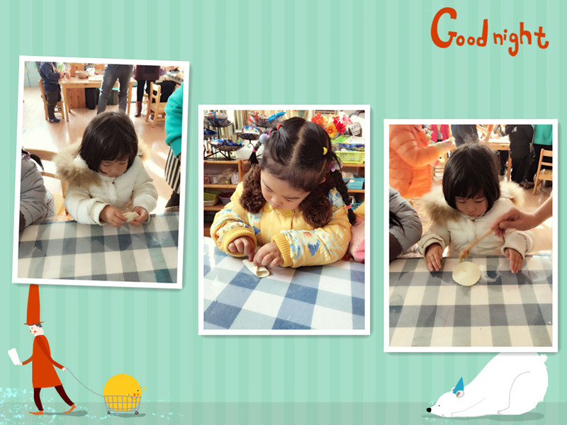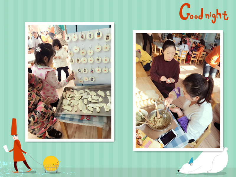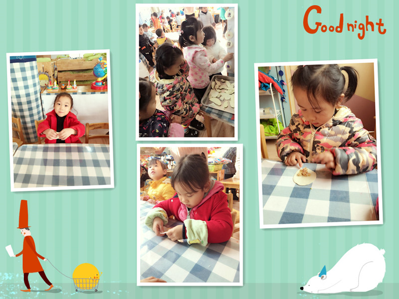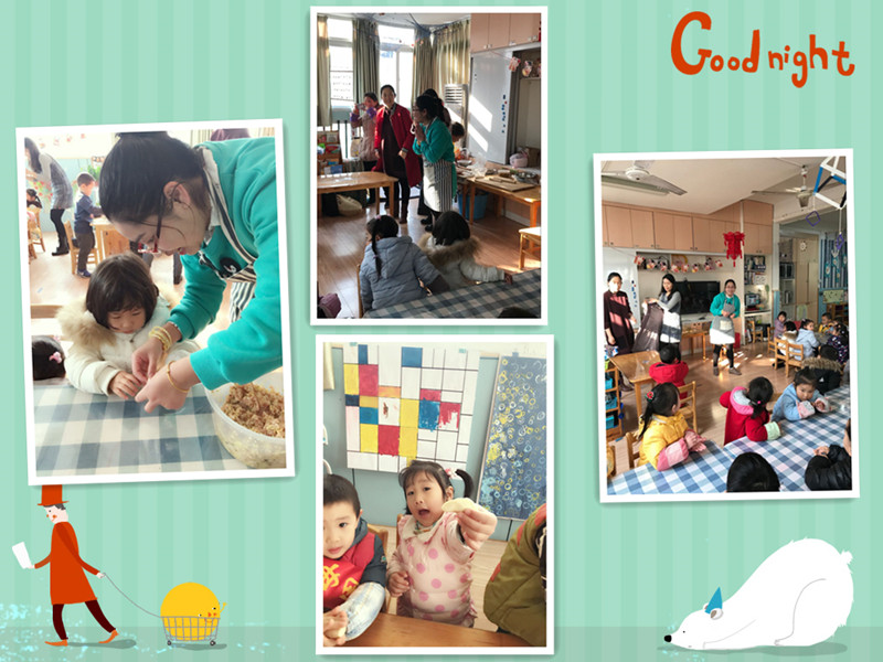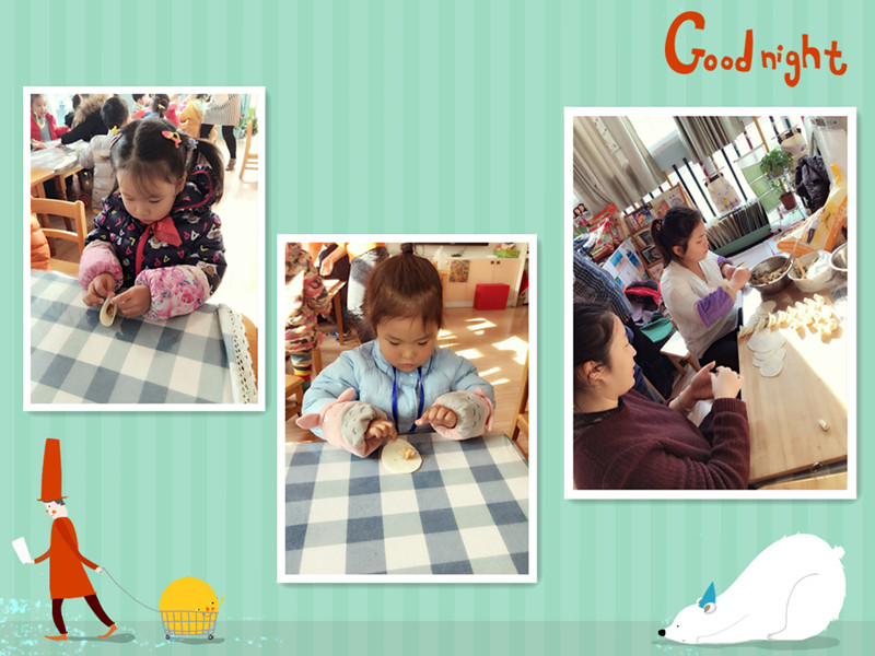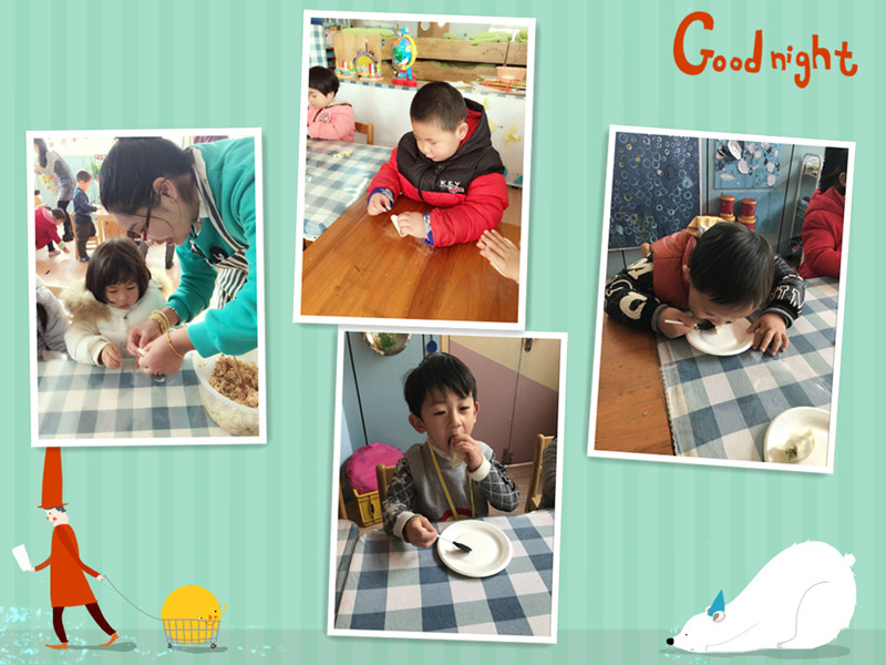 吃饺子喽 今天有五位美丽的妈妈来到我们小六班,她们要教我们包饺子,她们带来了好多我们没见过的东西,比如擀面棒、五颜六色的面团还有饺子馅,妈妈们开始擀面皮啦! 妈妈们太厉害了!饺子有“东北饺子”“花型饺子”等形状,接下来该我们包饺子啦!你们看好咯。终于包完饺子啦,可把我们累坏了,我们吃着自己包的饺子,心里甜丝丝的。 |