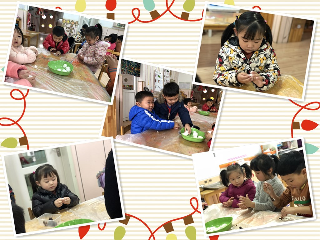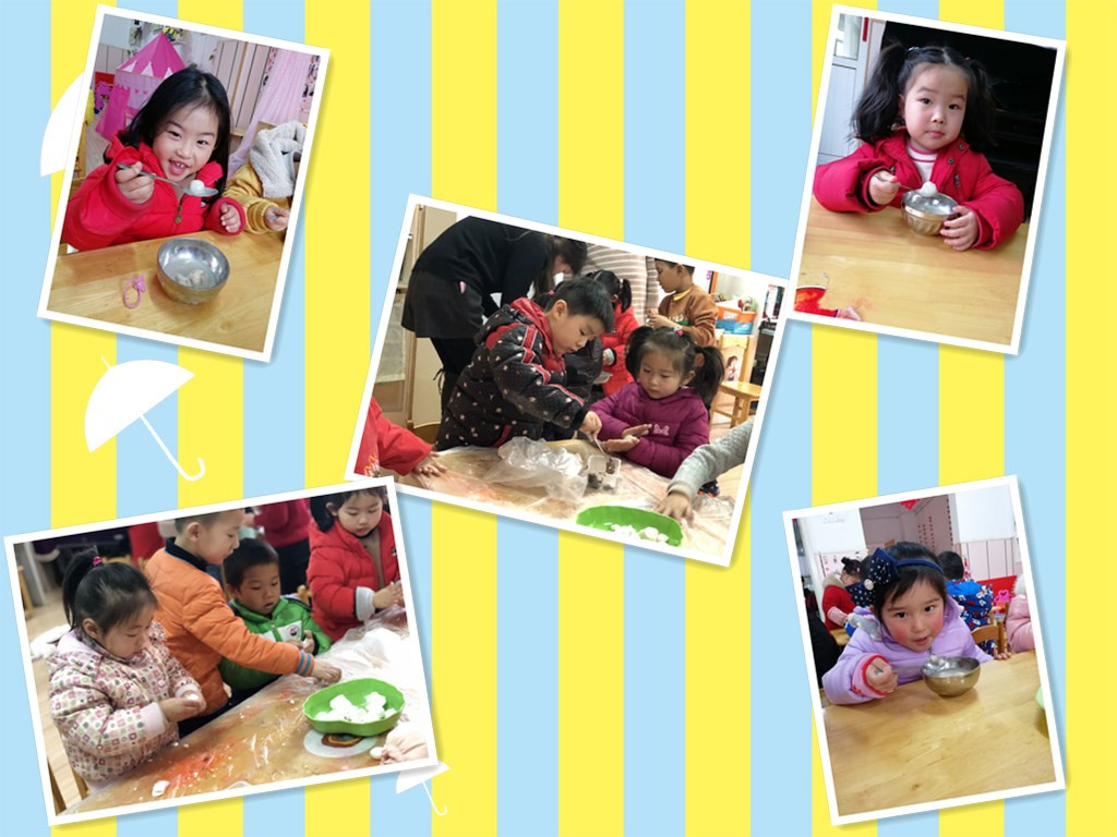 宝贝们热情高涨。搓、捏、按、团,一块块白白的糯米面在小朋友们的手中变成了诱人的汤圆,在大家有说有笑的欢乐氛围中、在彼此互相帮助下,很快的一个个又大又圆的汤圆就包好了。整个教室洋溢着欢乐、祥和、温馨的氛围。通过本次活动既传承了中华民族传统文化,营造温馨和谐校园氛围,又增进小朋友之间的情感交流,在喜悦祥和的气氛中感受到民族传统文化的魅力。小朋友们在一起渡过了一段快乐的时光,我们不但知道了元宵节吃元宵,还知道了怎样去做元宵。小朋友们不仅学到了知识,还学会了观察。只要我们平时稍加留心,在我们的身边,有许多地方非常的奇妙。