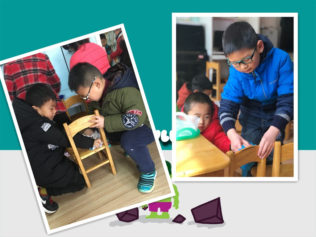 3月5日当天,小雷锋们纷纷集结,在响亮的雷锋口号的号召下,孩子们拿起小抹布、小水桶,在幼儿园中争做雷锋小标兵。桌椅板凳擦一擦,垃圾废纸捡一捡,让我们的幼儿园焕然一新。除此之外,我们大班的小雷锋们还带领小班的弟弟妹妹们一起,帮助弟弟妹妹打扫班级,和弟弟妹妹说一说雷锋叔叔的故事,帮助弟弟妹妹做一做自己力所能及的事,小班的孩子们也被哥哥姐姐们的行动所感染,纷纷拿起小抹布和哥哥姐姐一起学做小雷锋!