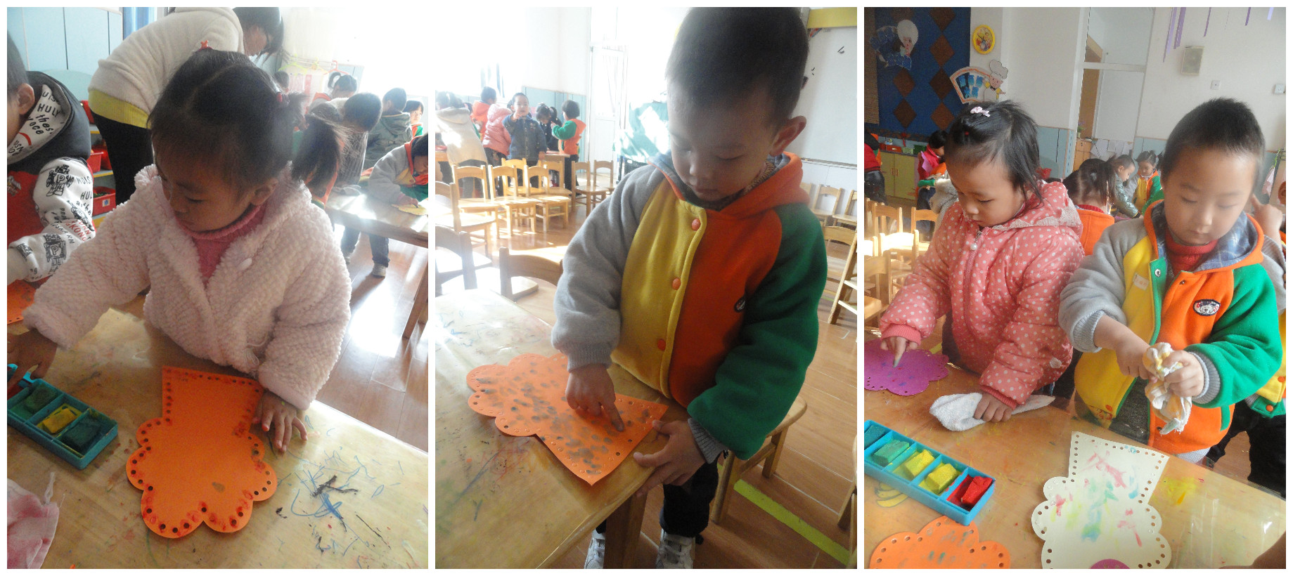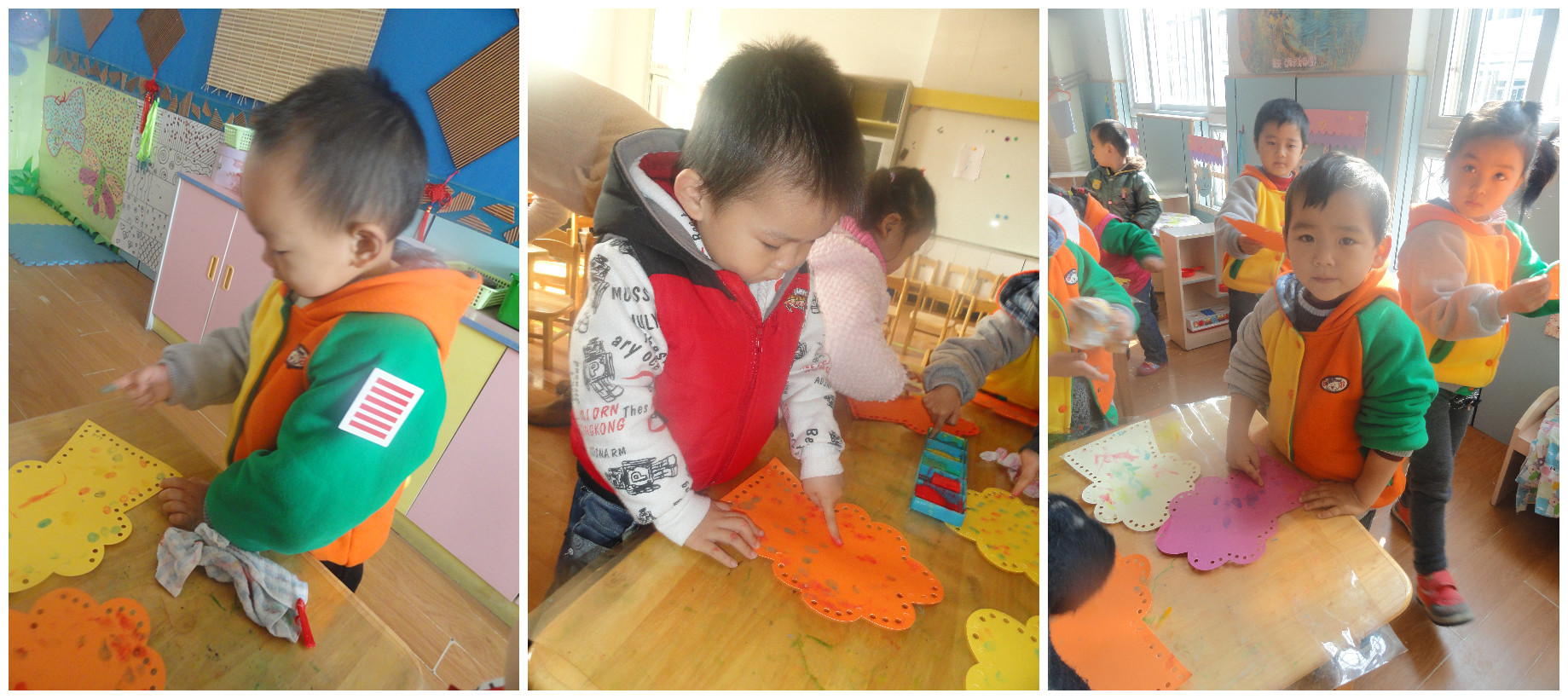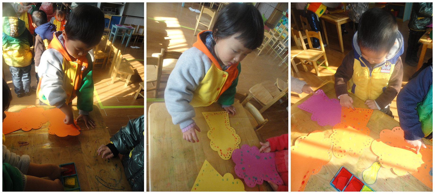 把手指用毛巾擦一擦,再换一种颜色,只能一个手指头蘸颜料哦,不然会弄脏的!