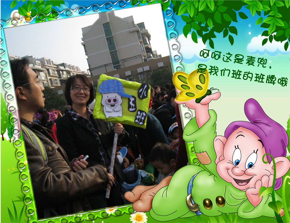 这是我们小五班的宝宝入园以来参加的第一次运动会!我们都很兴奋!瞧,这是我们的班牌: