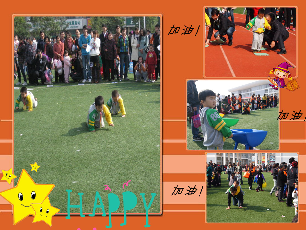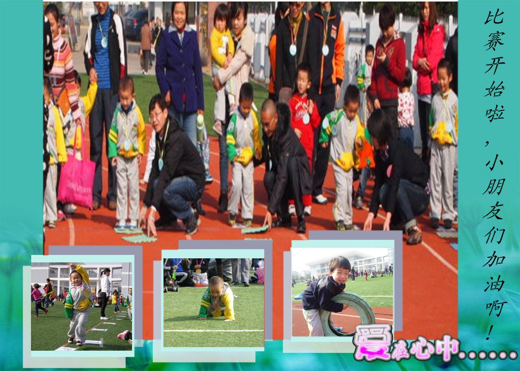 比赛终于开始了,有各种项目哦...移板过河、爬爬乐、兜兜球、推小车...