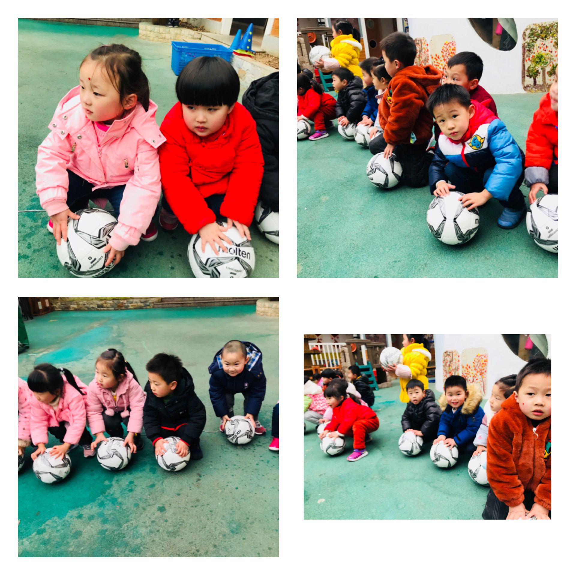 今天齐老师带我们玩足球游戏啦,开学第一课《小兔跳跳跳》可真好玩。齐老师带着我们去森林里“采蘑菇”,还把“蘑菇”顶在头上,真有趣!最后,齐老师教了我们如何滚球,听起来似乎一点都不难。可是,足球宝宝好像没有那么听话,我把它轻轻地放在地上还没有开始滚就跑远了!在和同伴们还有齐老师一起游戏中,我们都很开心~