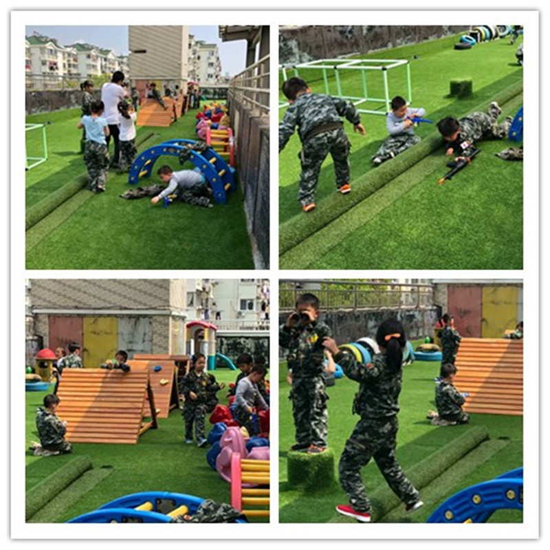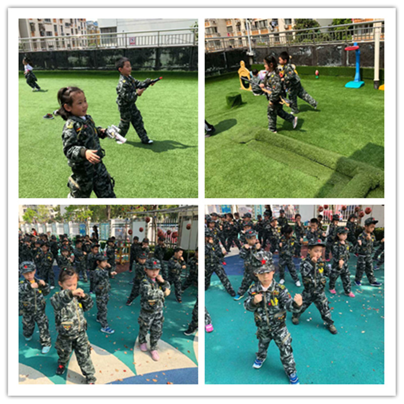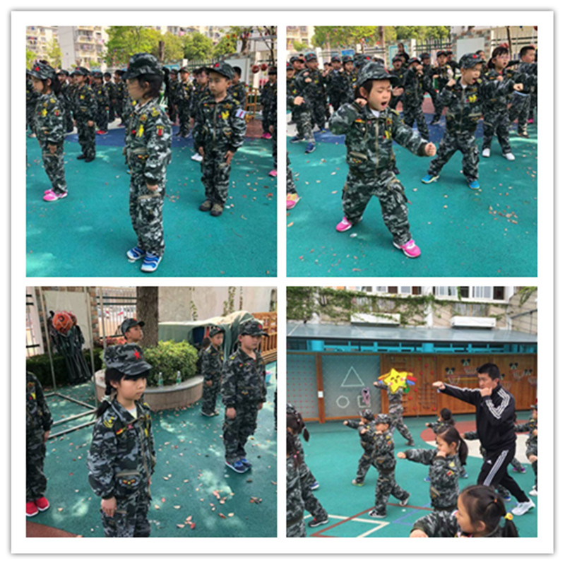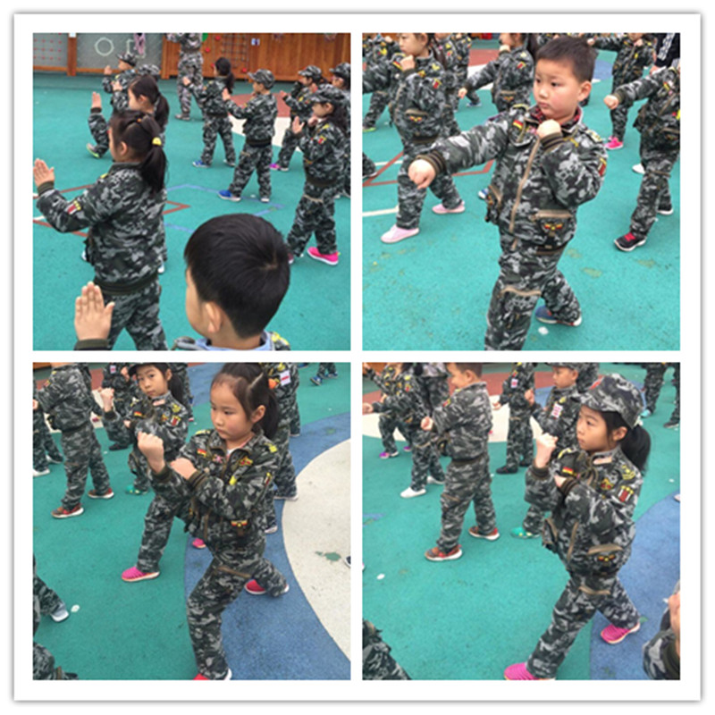 进入了春花烂漫的四月,我们大二班的军训也进行了一段时间,小朋友的军姿都已进练得挺拔如松,每个人的小脸上都透出了刚毅。现在的军训,除了开始的站军姿之外,我们还训练了穿越障碍、模拟射击、打军体拳等等项目,小朋友们通过军训增强了纪律意识,提高了自我控制能力和与同伴合作能力,变得勇敢和自信。