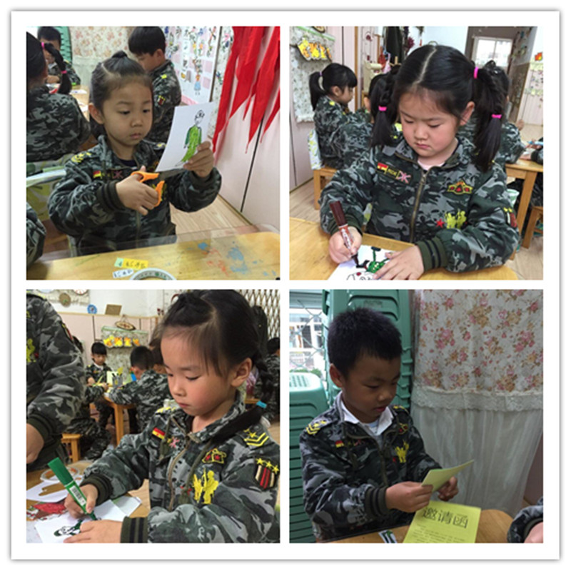经过为期3周的“小小兵”训练,小朋友们都已经掌握了新的本领,学到了解放军叔叔们勇敢、自信、坚持和不怕困难的好品质。现在小朋友们自己动手制作邀请函正式邀请自己的爸爸来“阅兵”,让爸爸亲眼见证自己的成长,为自己成为一名合格的小小兵而鼓掌!