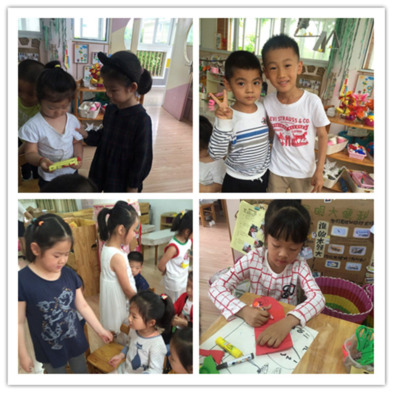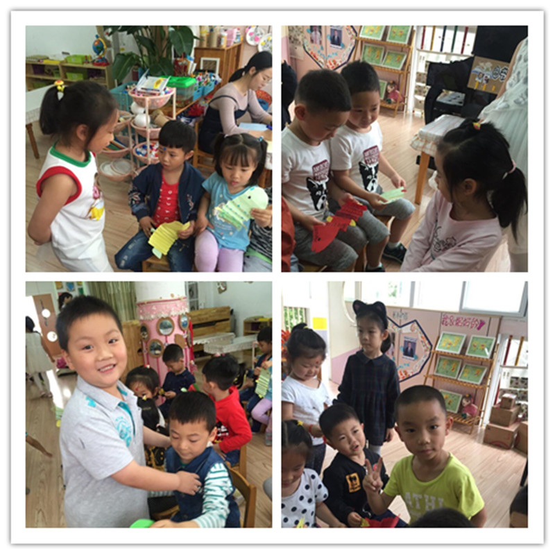 今年的六一儿童节,大(二)班的小朋友们觉得自己作为大班的哥哥姐姐,已经是中班、小班弟弟妹妹们的榜样了,他们感到骄傲和自豪。为了表达对弟弟妹妹们的关心和爱护,他们特地自己动手制作了漂亮的礼物送给弟弟妹妹们,祝福他们天天开心,六一快乐!