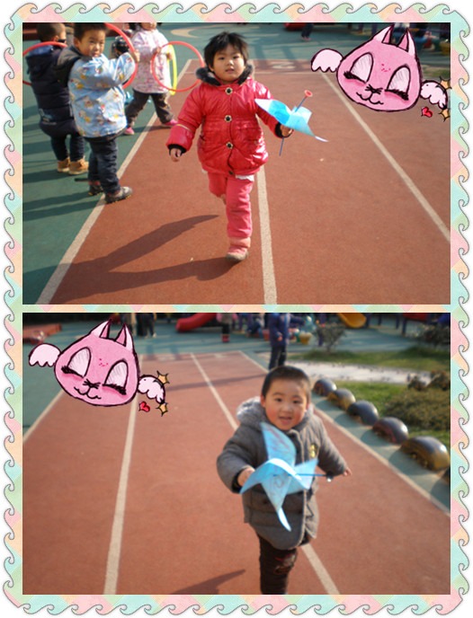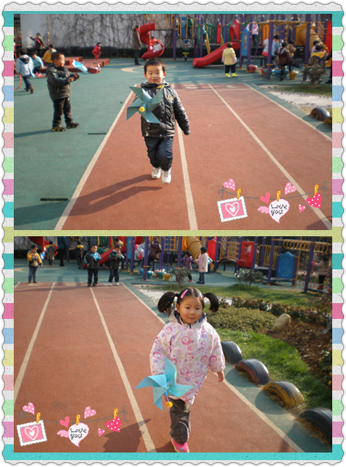 大风车,吱呀吱悠悠地转,这里的风景真好看.......我们也有大风车哦,告诉你一个秘密,只要我跑起来,我的大风车就会“呼呼呼”地直转哦!不信,你看!
