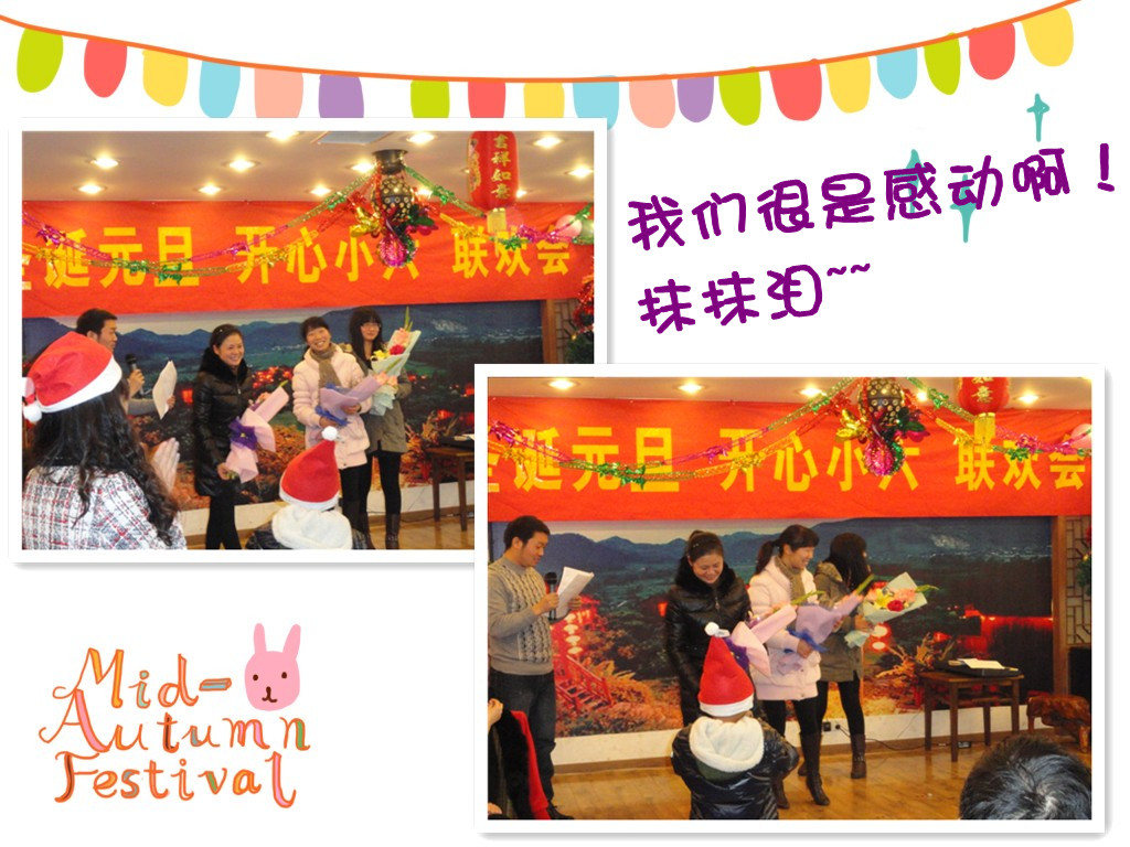 主任代表全班家长感谢我们三位老师尽心尽力的照顾孩子们,并请宝宝们上台献花,哎呀好感动啊!