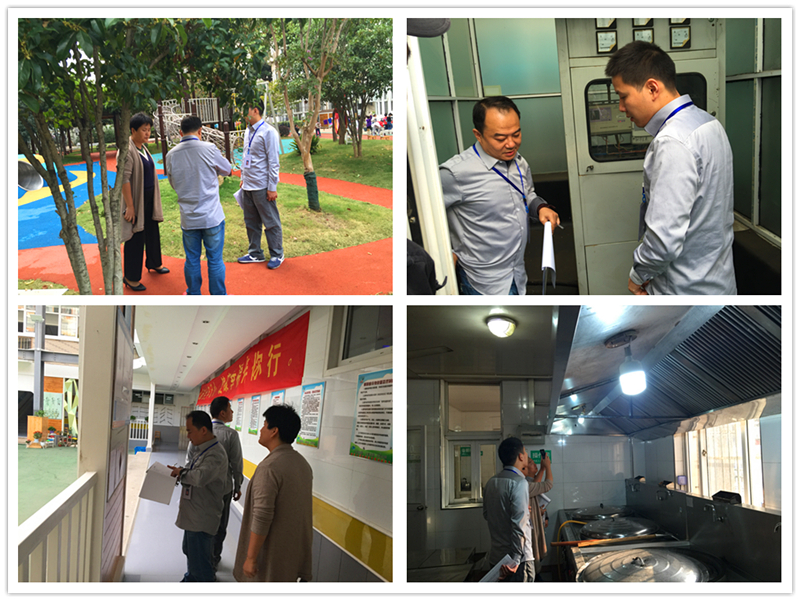 实地查看和资料查阅后,两位检查的师傅,对我园的整体安全公工作给予了肯定,就检查实际情况提出了三处需要整改的地方:每个楼道还需添设悬挂的发亮指示牌、厨房油烟机照明灯需要灯罩、配电间需要配置应急灯。徐园长表示尽快依据要求和规范进行整改,将此三项整改工作列入计划,着手实施。