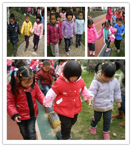 冬日的午后,阳光灿烂,我们带着小班的弟弟妹妹们散步呢!我们中一班的口号是:“大手拉小手跟我走,我们是永远的好朋友!”