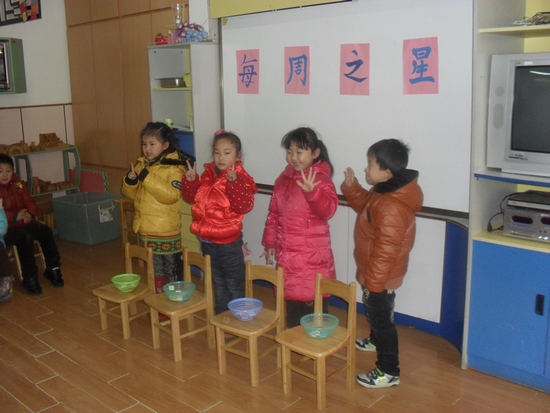 为了激发幼儿在园的主动积极性,引导幼儿健康快乐地成长,每周一的升旗仪式,我们设置了公布“每周之星”的环节。让我们走进活力的大二班,看看他们的“每周之星”是如何选取出来的: