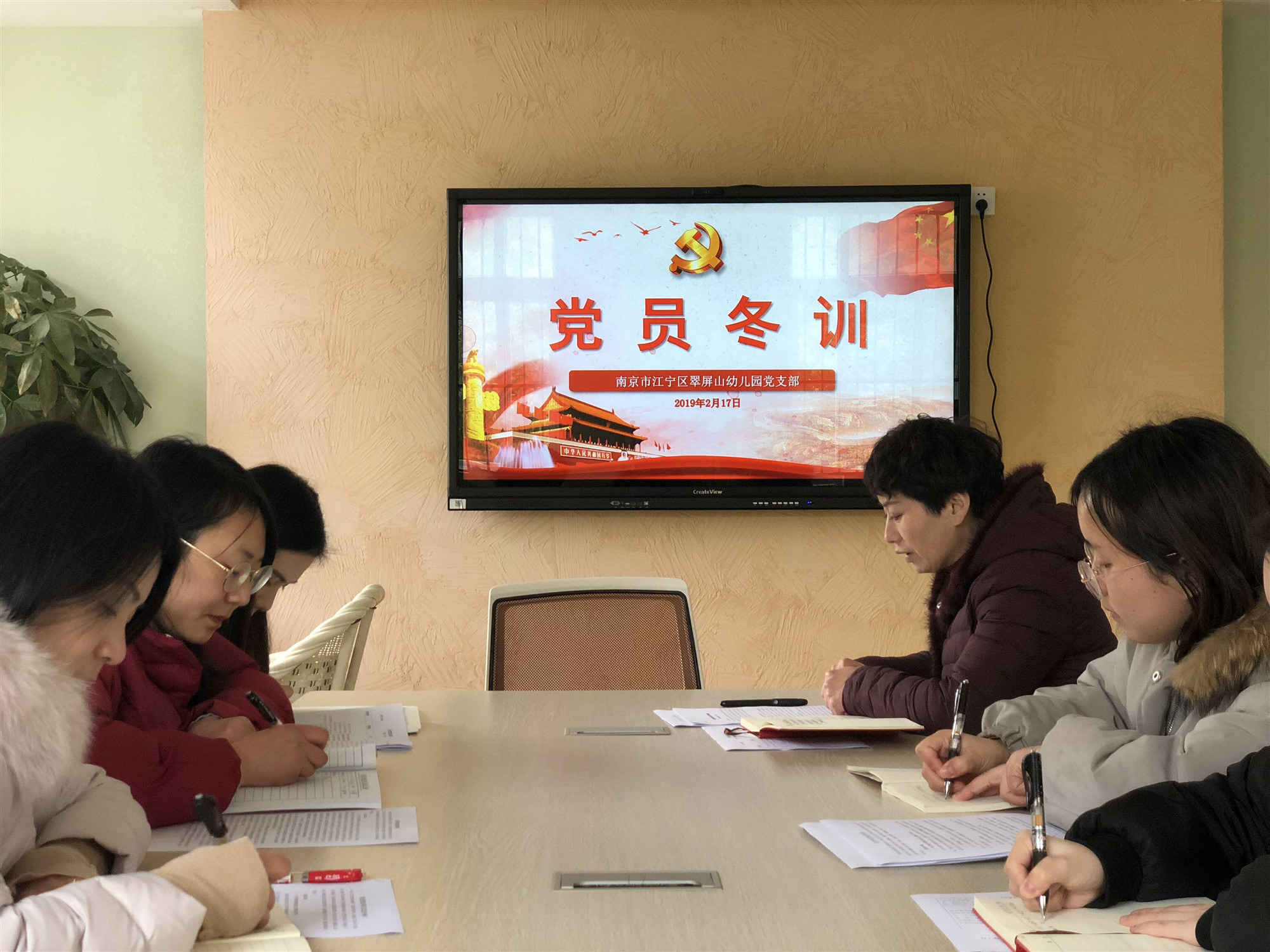 为了贯彻落实十九大精神,2019年2月17日下午,翠屏山幼儿园党支部进行了党员冬训活动,毛应翠书记进行了书记上党课,与我们学习了文件精神“切实加强党对意识形态工作的领导”,希望我们充分发挥新时代文明实践所、实践站、实践基地和实践点的作用,找准党员群众需要的切入点和着力点,让党的创新理论“飞入寻常百姓家”。以“支部书记上党课”为基本举措,集中推进“千场微党课进基层”活动。