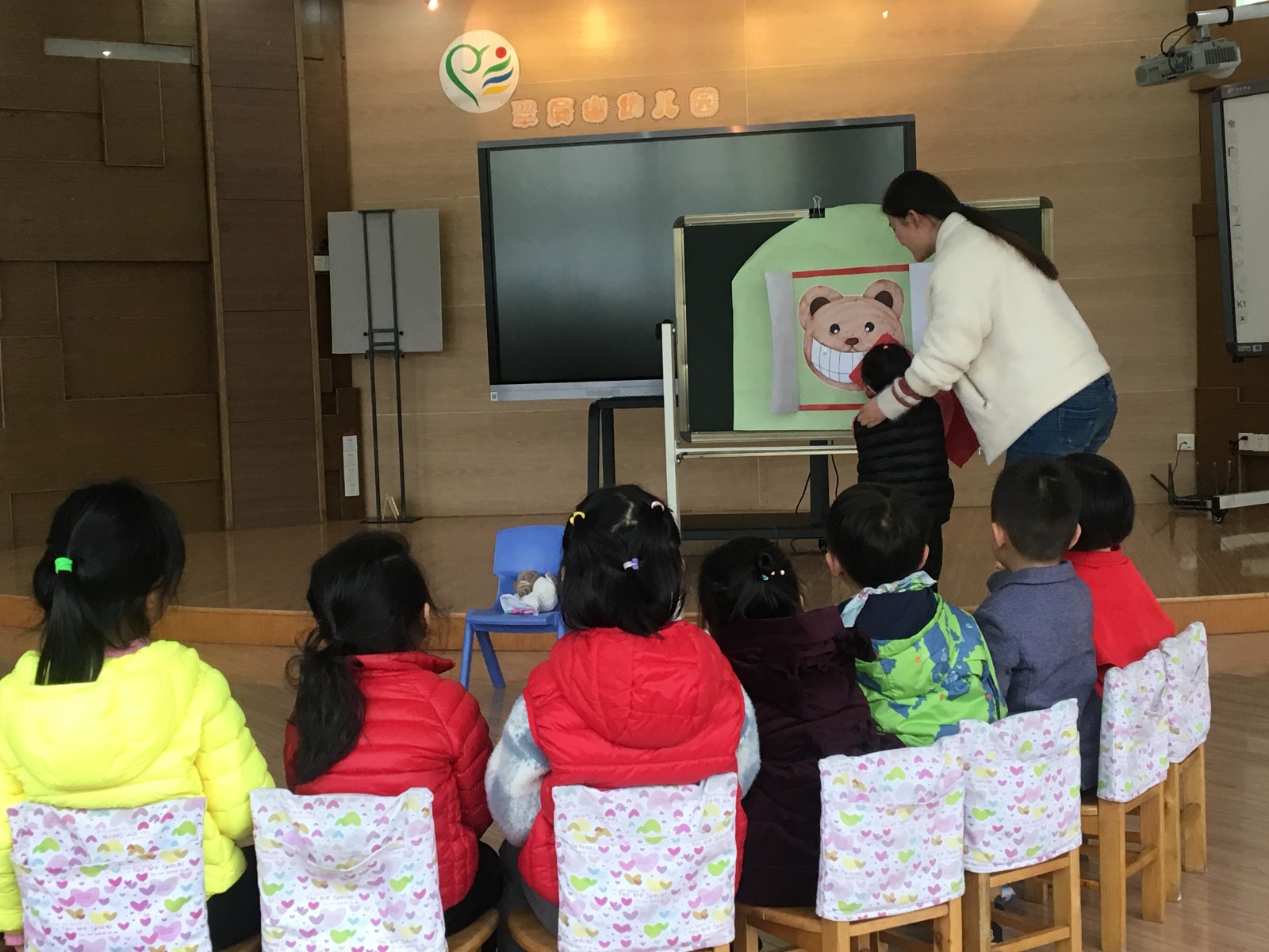 “怎么保护我们的牙齿呢?”高琪老师用一首活泼欢快的故事儿歌唱出了孩子们身边的生活小事,大熊的牙齿里有了脏脏的细菌,小朋友们用好听的声音唱出来,为小熊“施魔法”,赶走牙细菌吧!在生动活泼的歌曲演唱中,不仅增加了歌唱活动的趣味性,更寓教于乐的同时,帮助孩子提高卫生保健意识,养成良好的卫生习惯。