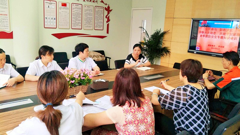 食堂的消防安全一直是幼儿园安全工作中的重点之一。为提高全园食堂员工预防火灾、处置火灾及提高灾害事故的应急处置能力。2019年6月20日下午,翠屏山幼儿园特邀安居应急公司的陈教官对食堂员工开展了一次图文并茂的消防安全知识培训及灭火技能演练活动。