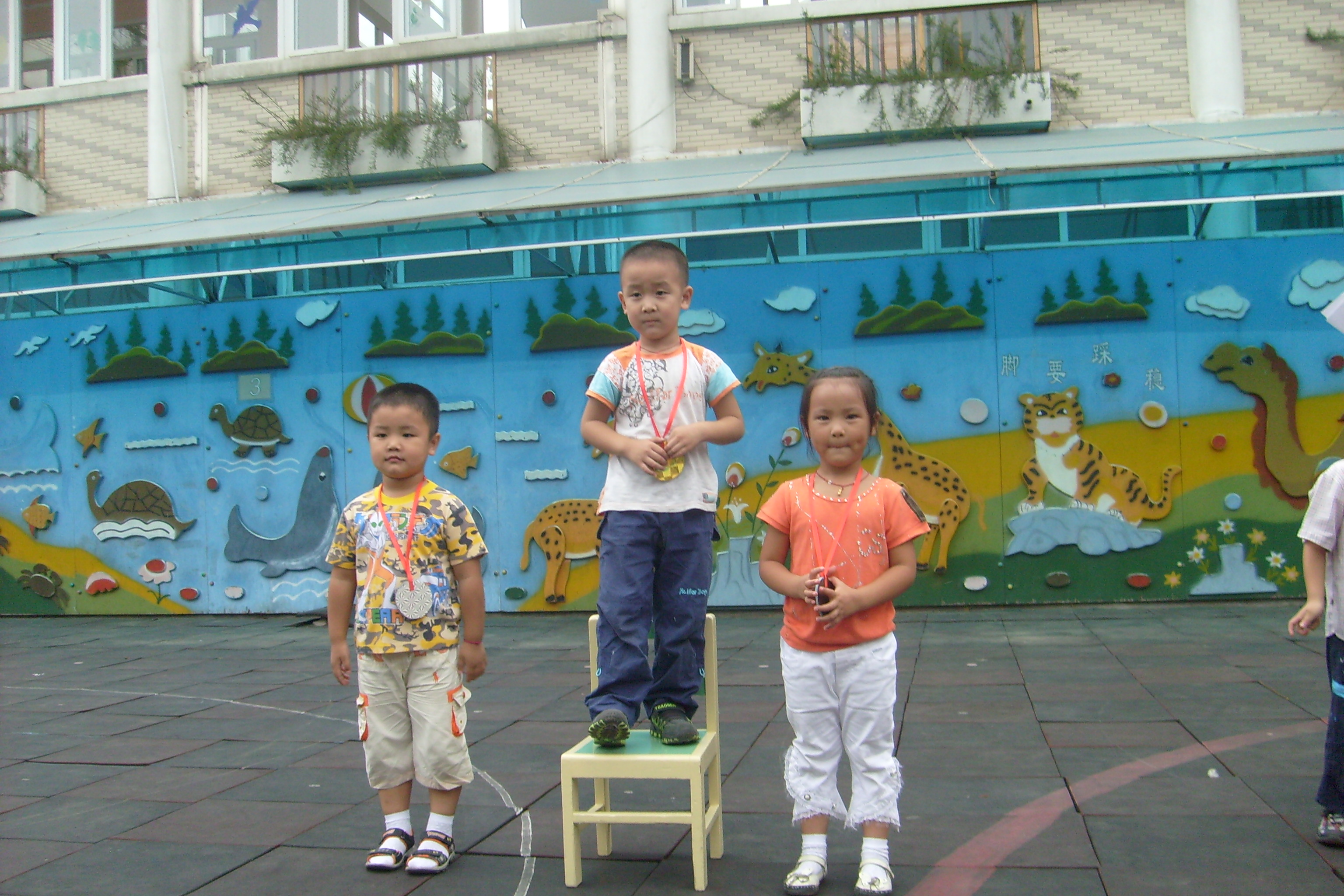 比赛好激烈呀,我得加油才行。 魏斌小朋友得到银牌啦!这次运动会我们班共获得三块银牌。