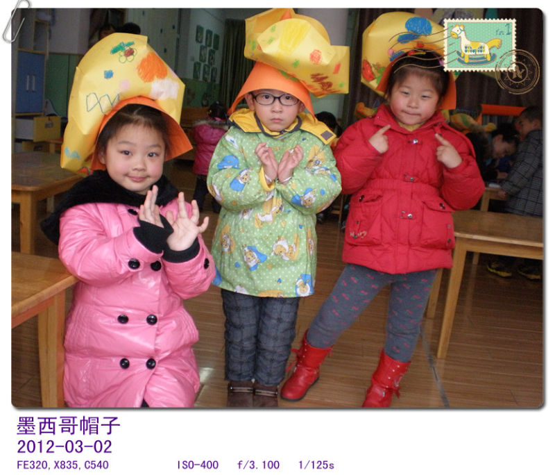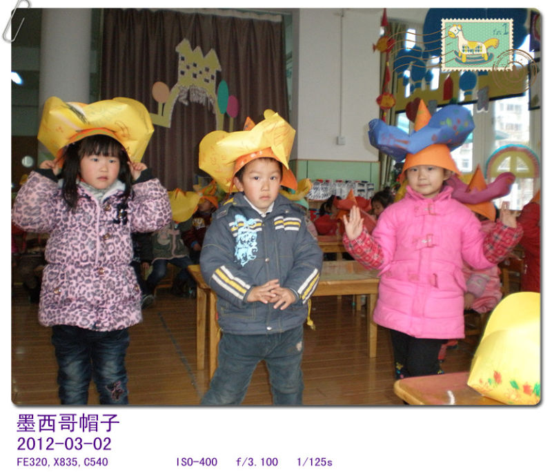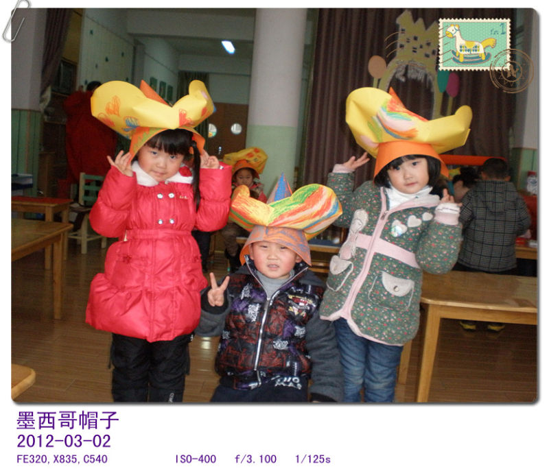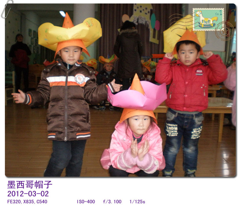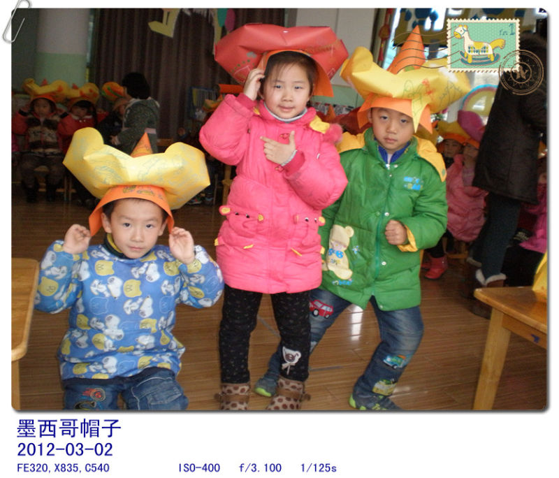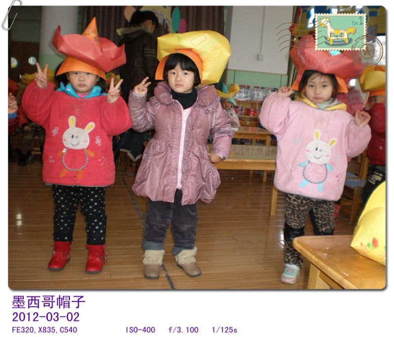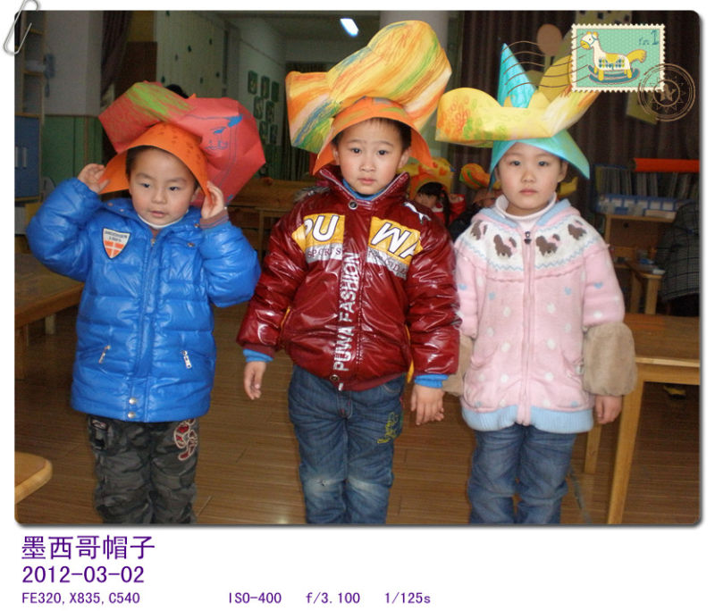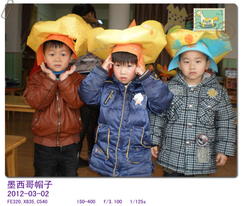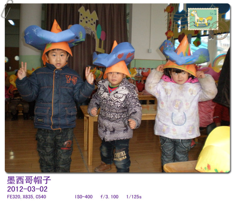 你听过周杰伦的《牛仔很忙》吗?你看过牛仔戴的帽子吗?今天我们每个宝宝都做了一顶牛仔帽哦,戴起来可神气啦!快来一睹我们的风采吧!