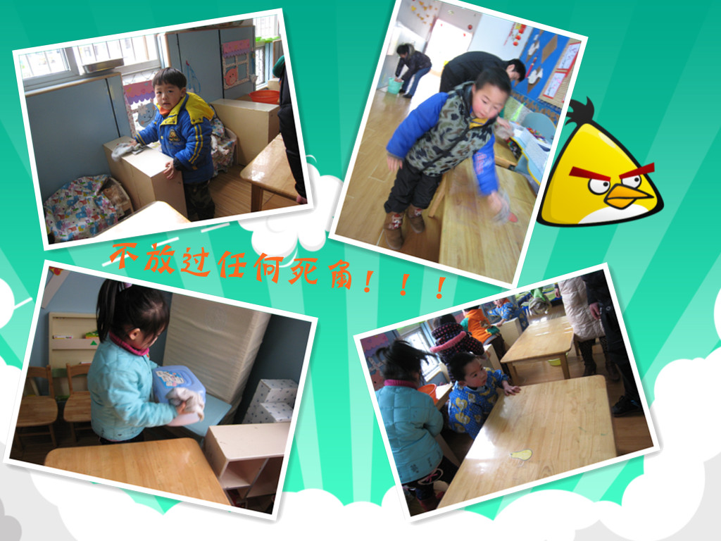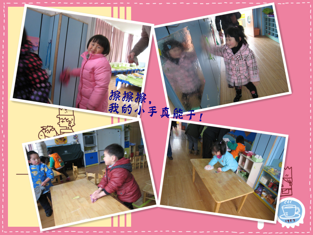 这是我们小六班的教室,孩子们的眼睛可真厉害,连角落都擦得干干净净。