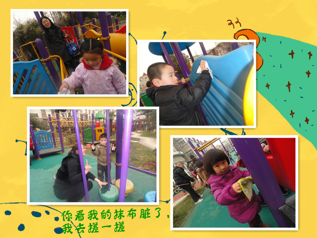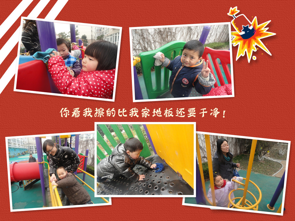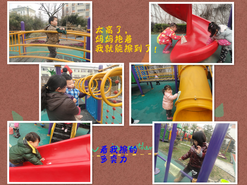 下面是我们宝宝很喜欢玩的滑滑梯,一个个擦得可认真了!