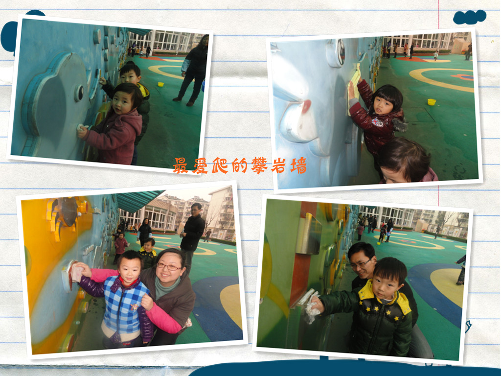 这里是我们的攀岩墙,也是宝宝平时最爱玩的玩具之一哦,上面有很多小动物,宝贝们都喜欢往上爬呢!