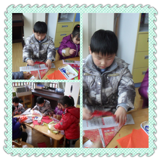 撕、剪、贴彩纸也是一种很好的办法呢,我喜欢彩纸在空中飞扬的样子。