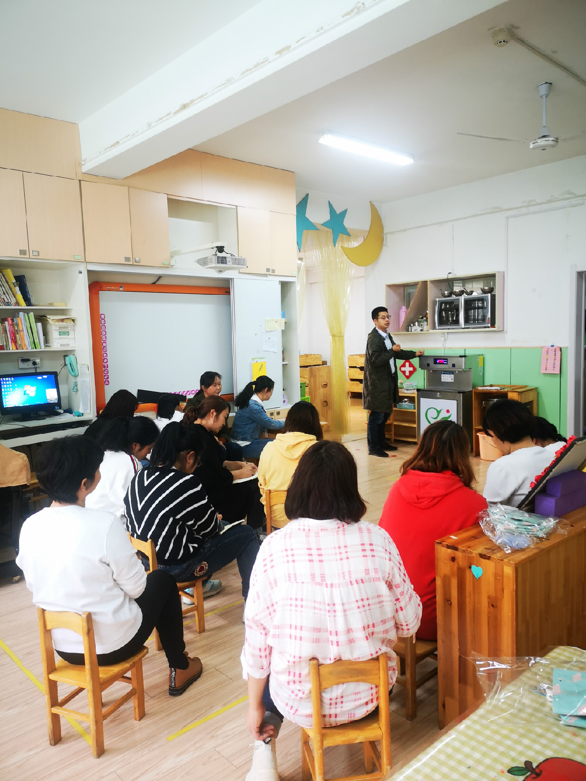 我园特请直饮水专业人员王晶晶到我园给保育老师开展“直饮水设备清洁维护消毒的培训”.