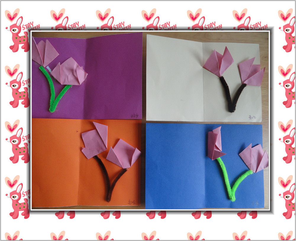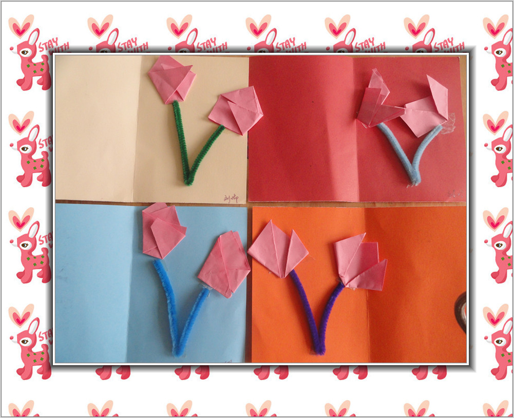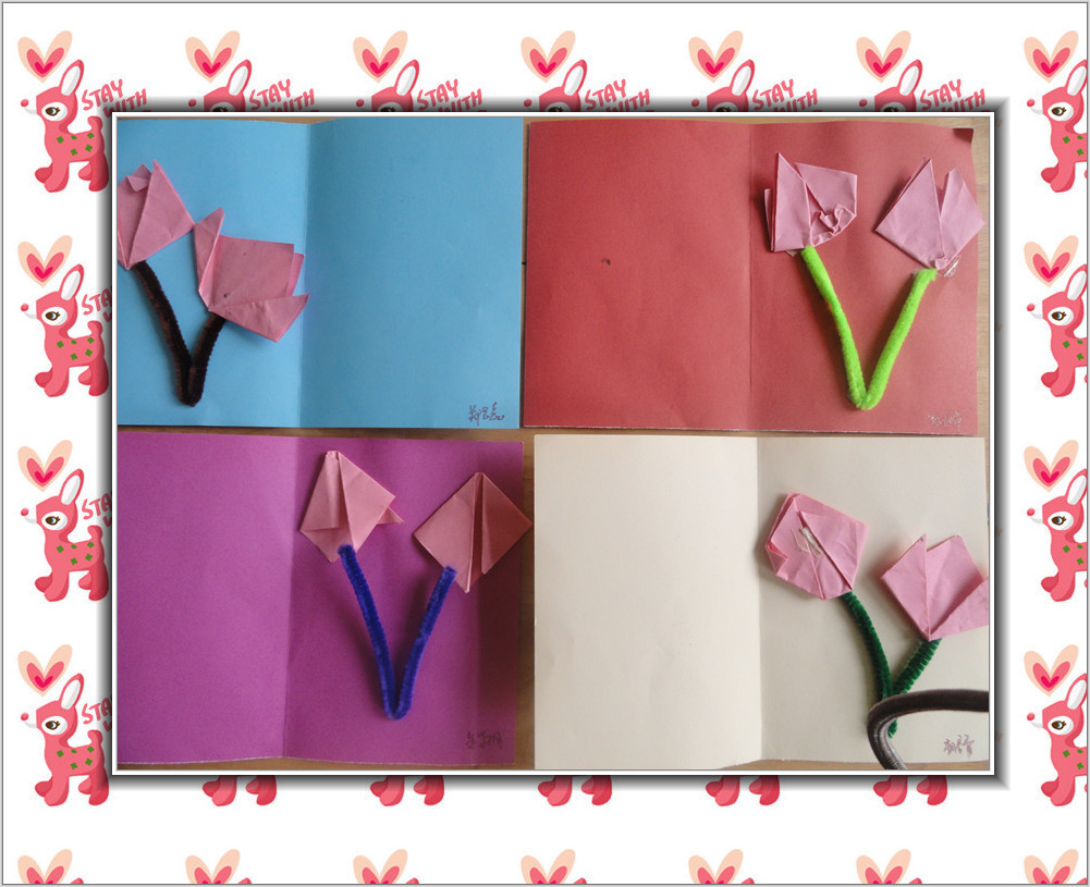 制作一个卡片送给妈妈,把我做的郁金香贴在里面。