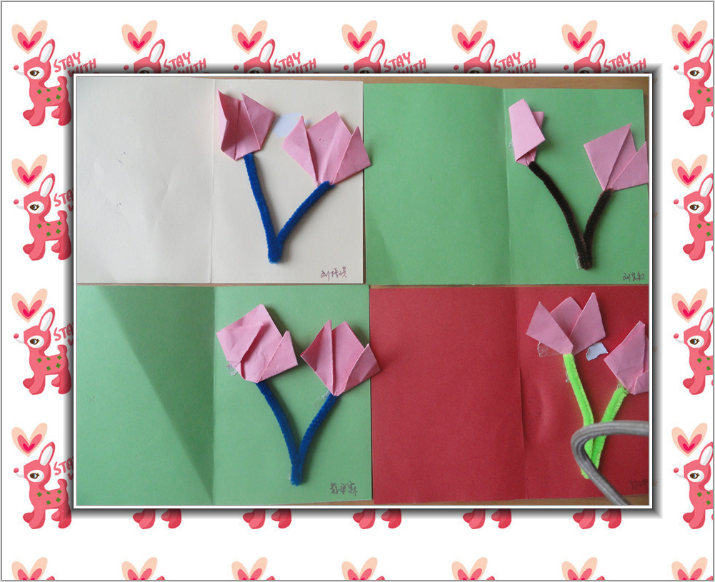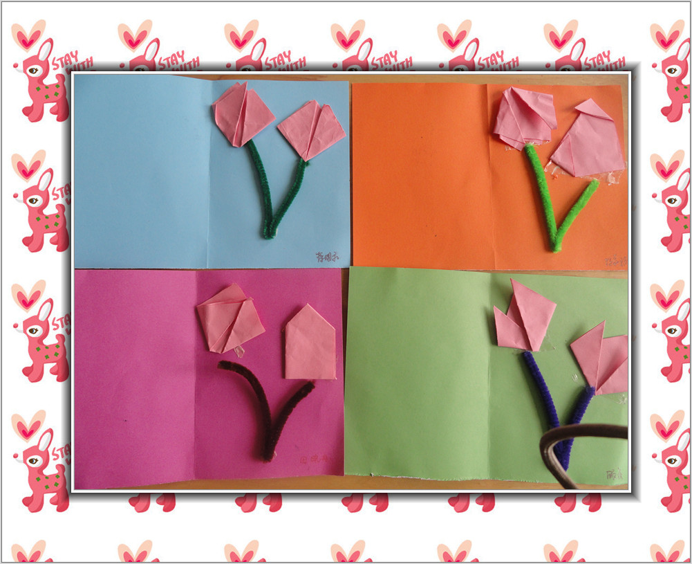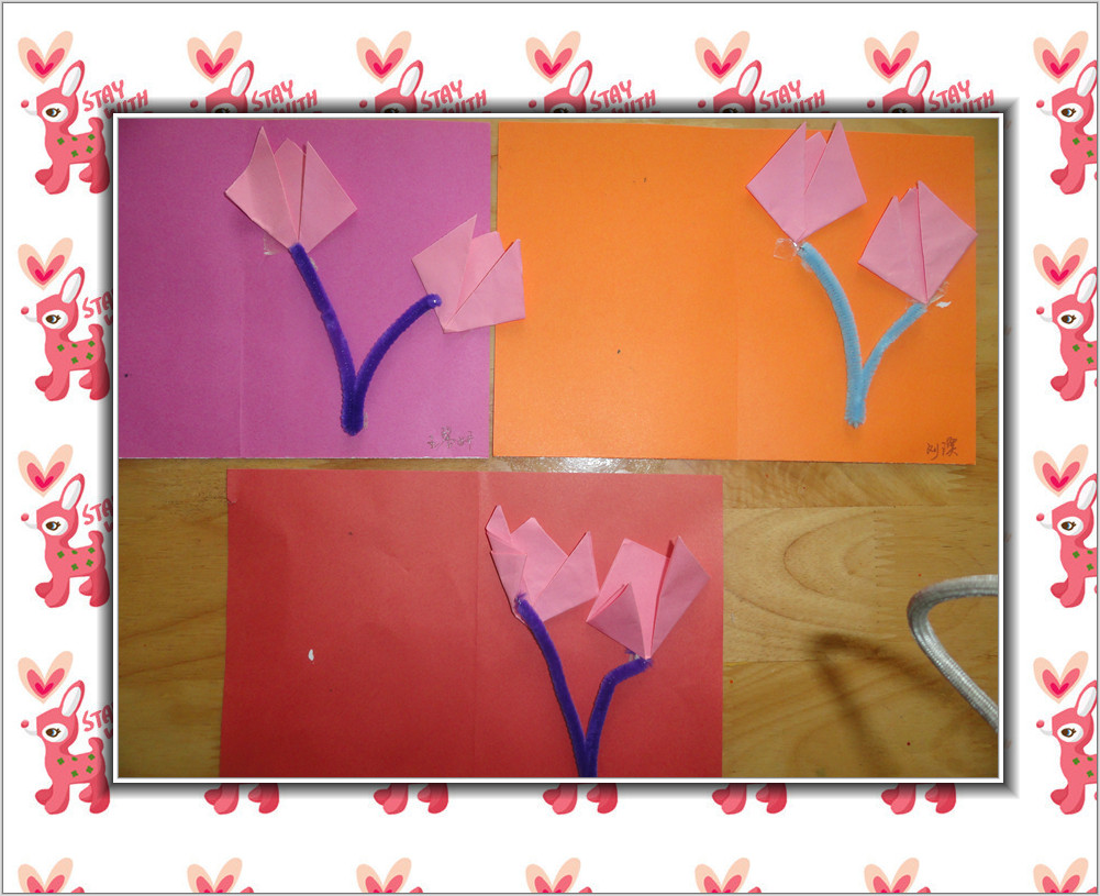 看我们做得这么认真,你们都看出来了吧,我在折郁金香呢,可好看了。