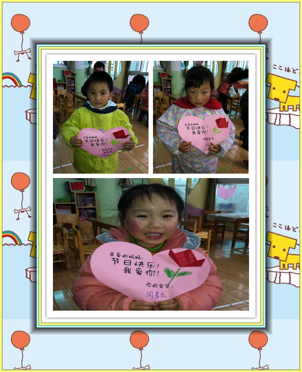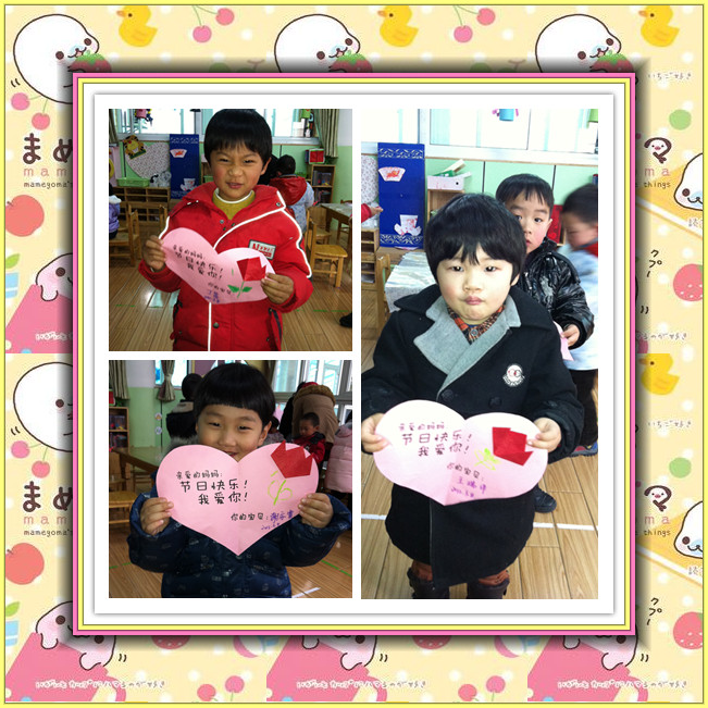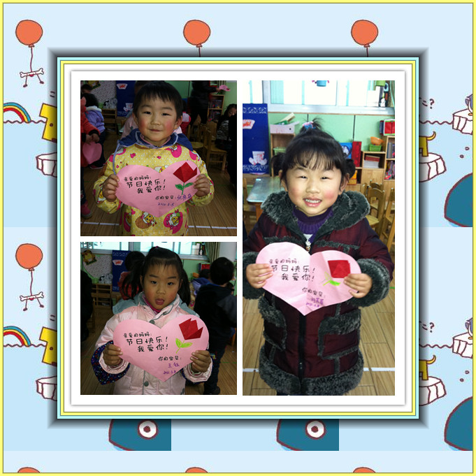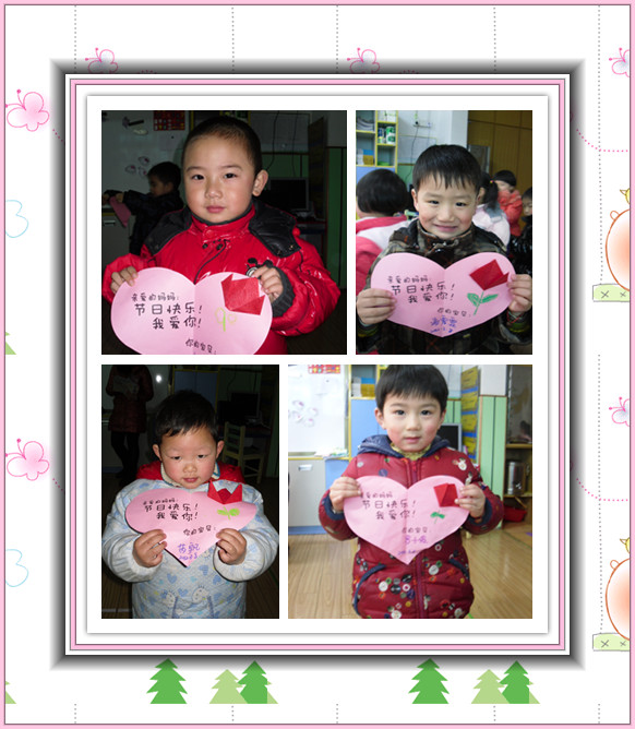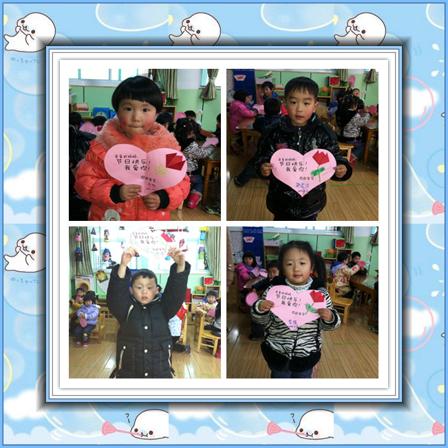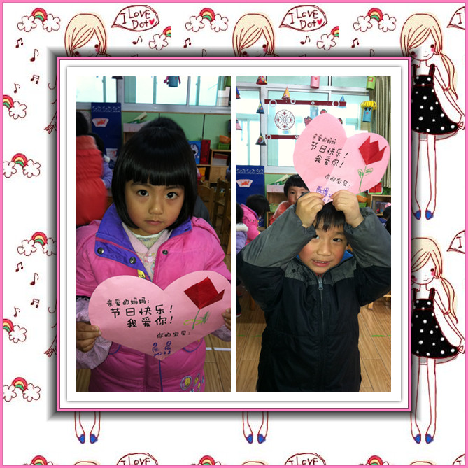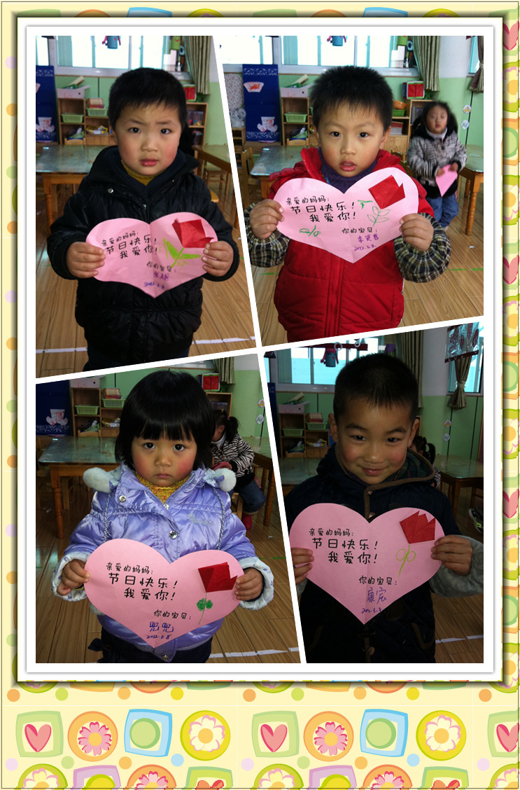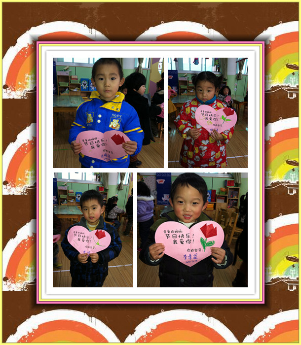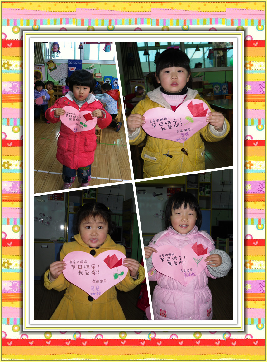 “女性”,一个言之不尽的美丽词汇,女性,一个日益独立、进步的群体;她们,是这世间钟灵毓秀的高贵生命,她们,是造物主精心孕育的迷人奇葩;生活因为她们而馨香温情,世界因为她们而绚丽多彩,人类因为她们而生生不息。 初春的柔风,即将送来亲情最浓的2012年“三八”妇女节。我们小一班宝宝亲手制作郁金香卡片送给最亲爱的妈妈,祝您节日快乐!