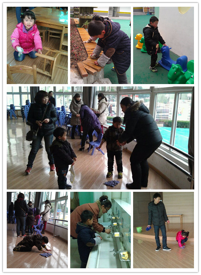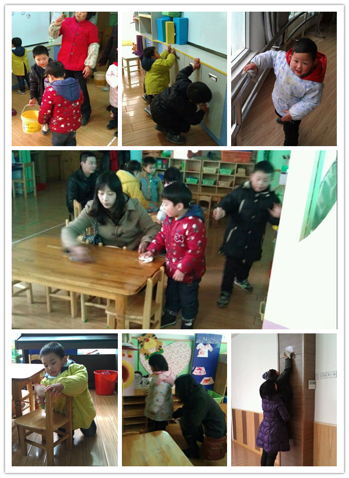3月6日,久违的阳光洒落在翠幼的每一个角落,“学习雷锋,装点翠幼”小班亲子护园活动下午2点在孩子们的期盼下,在家长的积极响应下拉开了帷幕。孩子们和家长早早准备好了劳动工具,抹布、小桶……活动室里、操场上、多功能厅、走廊上、攀岩墙上,到处都是孩子们和家长快乐劳动的身影,擦的擦,抹的抹,欢声笑语不断。