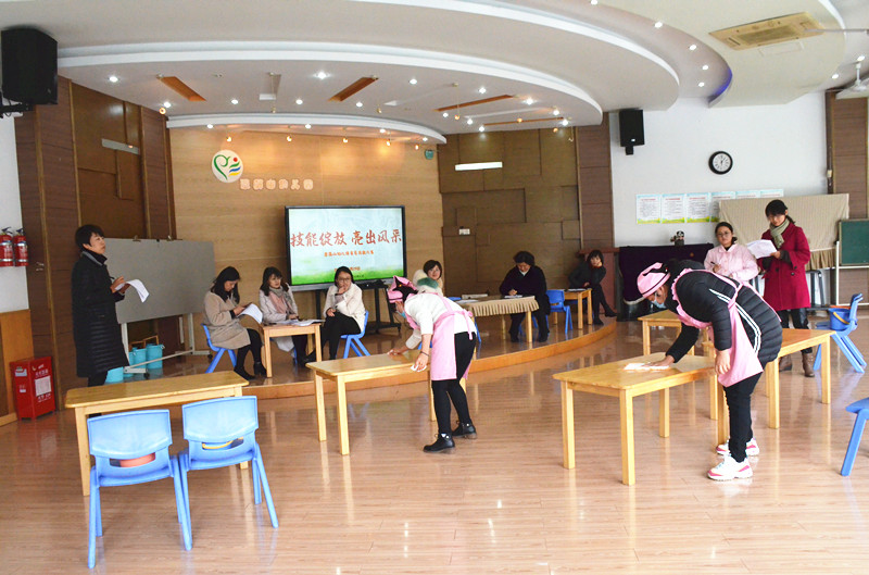 为有效提高保育教师业务素质,加强保育工作的整体水平,增强保育教师对保育工作重要性的认识,翠屏山幼儿园开展了保育员岗位练兵活动。