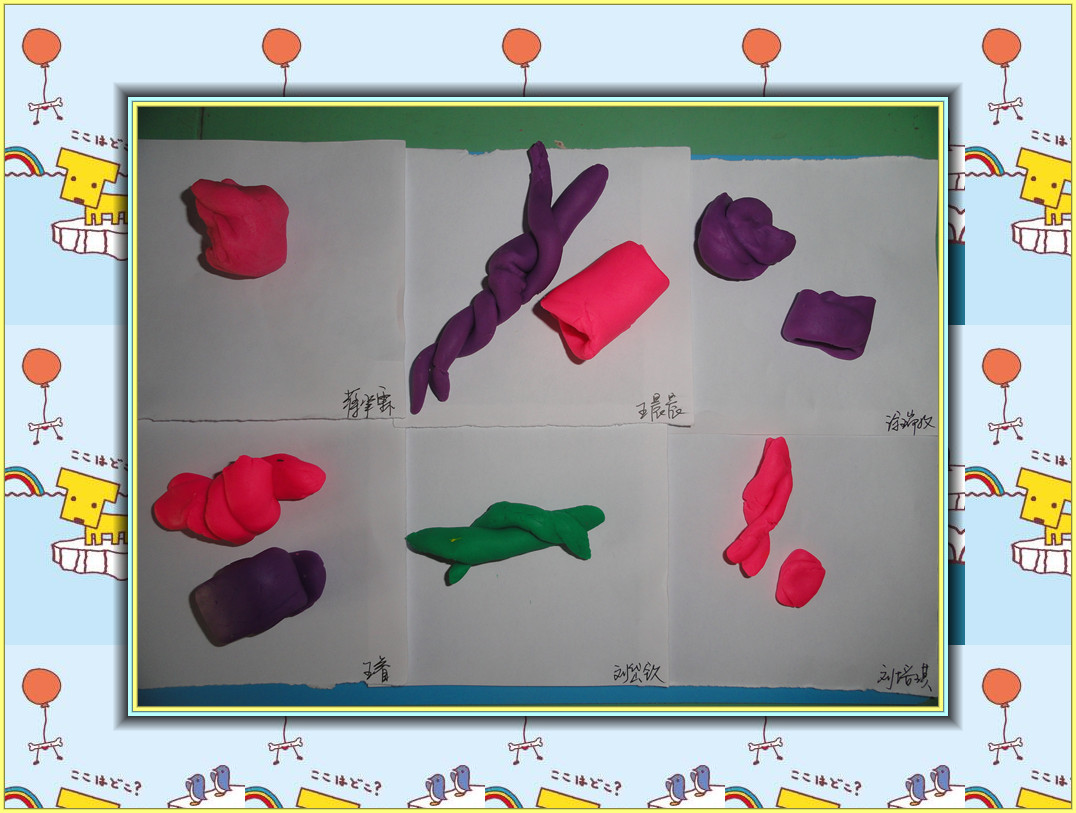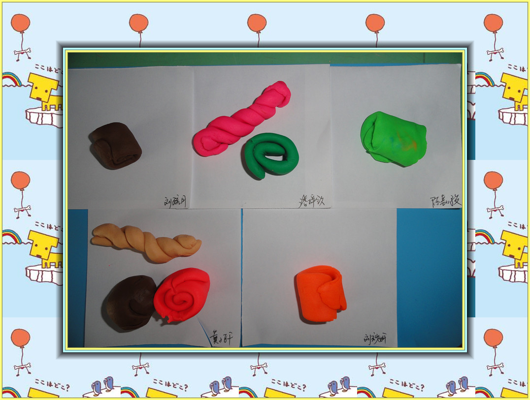 麻花怎么做呢?我来告诉你吧!先把油泥拆两半,搓搓搓,搓成两条长长的,然后绕在一起跳跳舞就好啦!