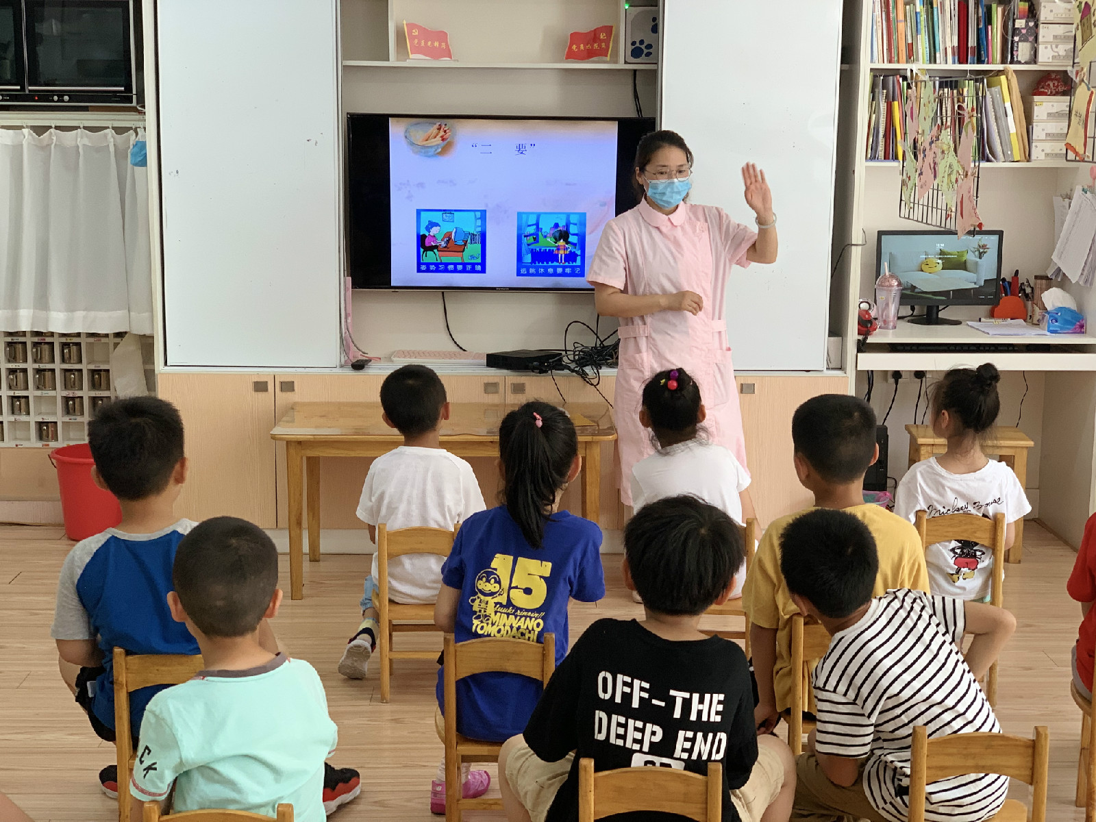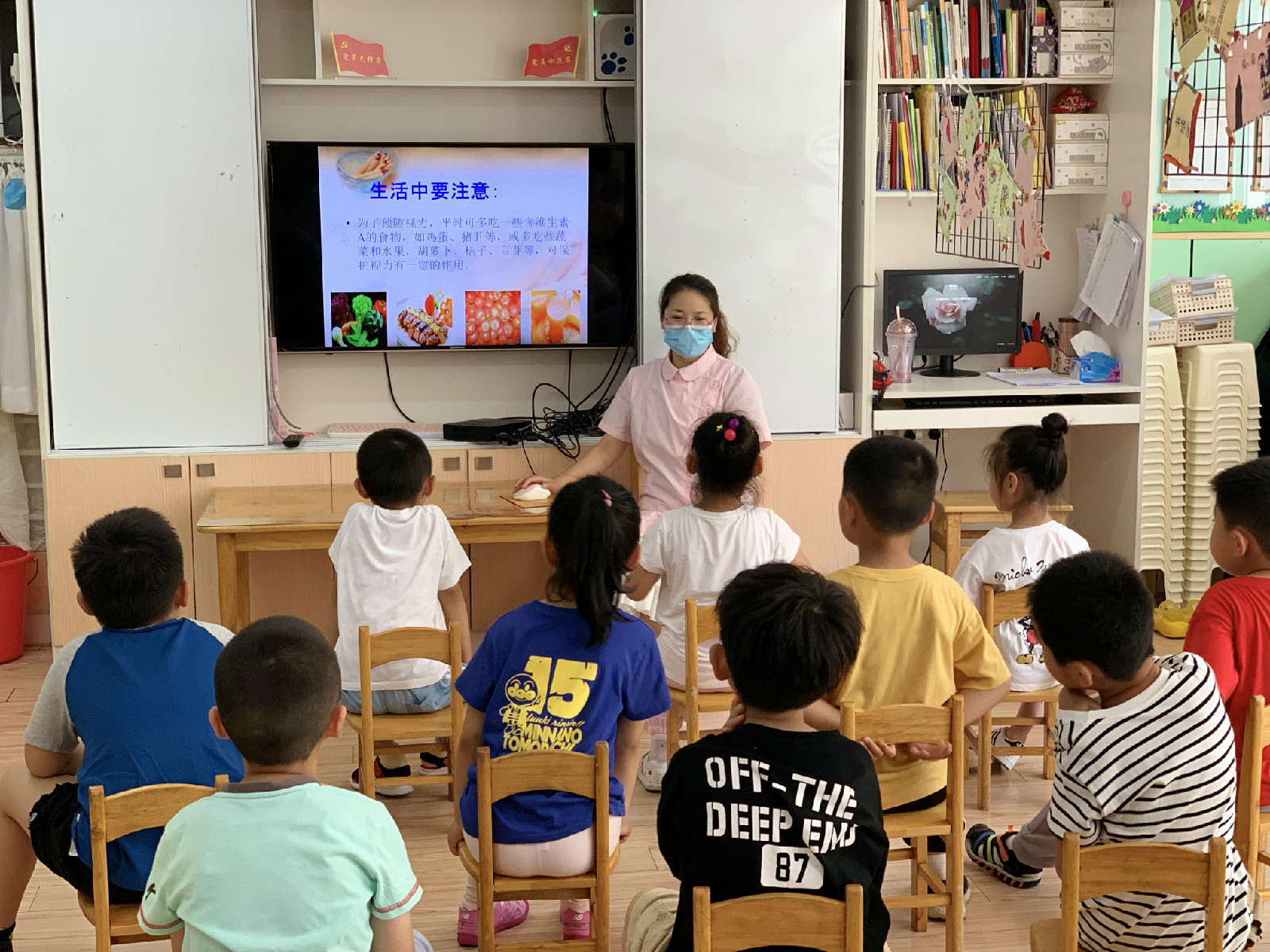 通过学习,保育员了解了孩子近视的原因,掌握了在日常生活当中怎样帮助孩子保护视力,如:在室内活动时,保持室内光线舒适,在孩子看书时要不断提醒孩子书和眼睛的距离、画画要保持正确的坐姿,并建议家长把控孩子看电子产品的时间,合理的选择电子产品;教育孩子养成良好的卫生习惯。