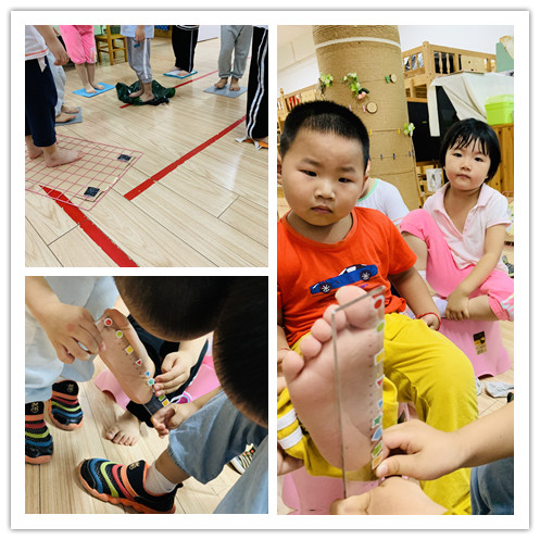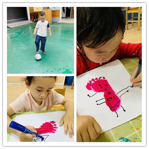 孩子们对脚印的兴趣之浓厚是源自于一次雨后的散步,近些日子是梅雨时节,空气潮湿,受天气影响,我们班孩子们好久没有出来散步了,这一天中午雨终于停了,带着孩子们来到小花园散步,本想着带孩子们去看一看幼儿园的枇杷生长的情况,却不料,到了枇杷树下后,发现孩子们都围在了枇杷树旁的沙池边……他们在看什么?沙池里有什么值得大家聚集目光,津津有味地你一言我一语的?我凑过去,看着他们盯着沙池里一排排脚印争论不休,“这是小猫的脚印!”“对的!我以前看到过有一只小猫跑来幼儿园的!”“不是小猫的吧,小猫脚印是小小的才对。”“是小朋友玩沙池雨鞋的印子吧?”…...头一次看到孩子们的讨论这么的激烈,我连插嘴的机会都没有,我默默的在孩子们身后把这张“神秘的脚印”拍摄了下来带回教室……