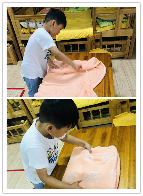 小班比赛项目有:叠毛毯、挂毛巾,鼻子灵和嘴巴甜。