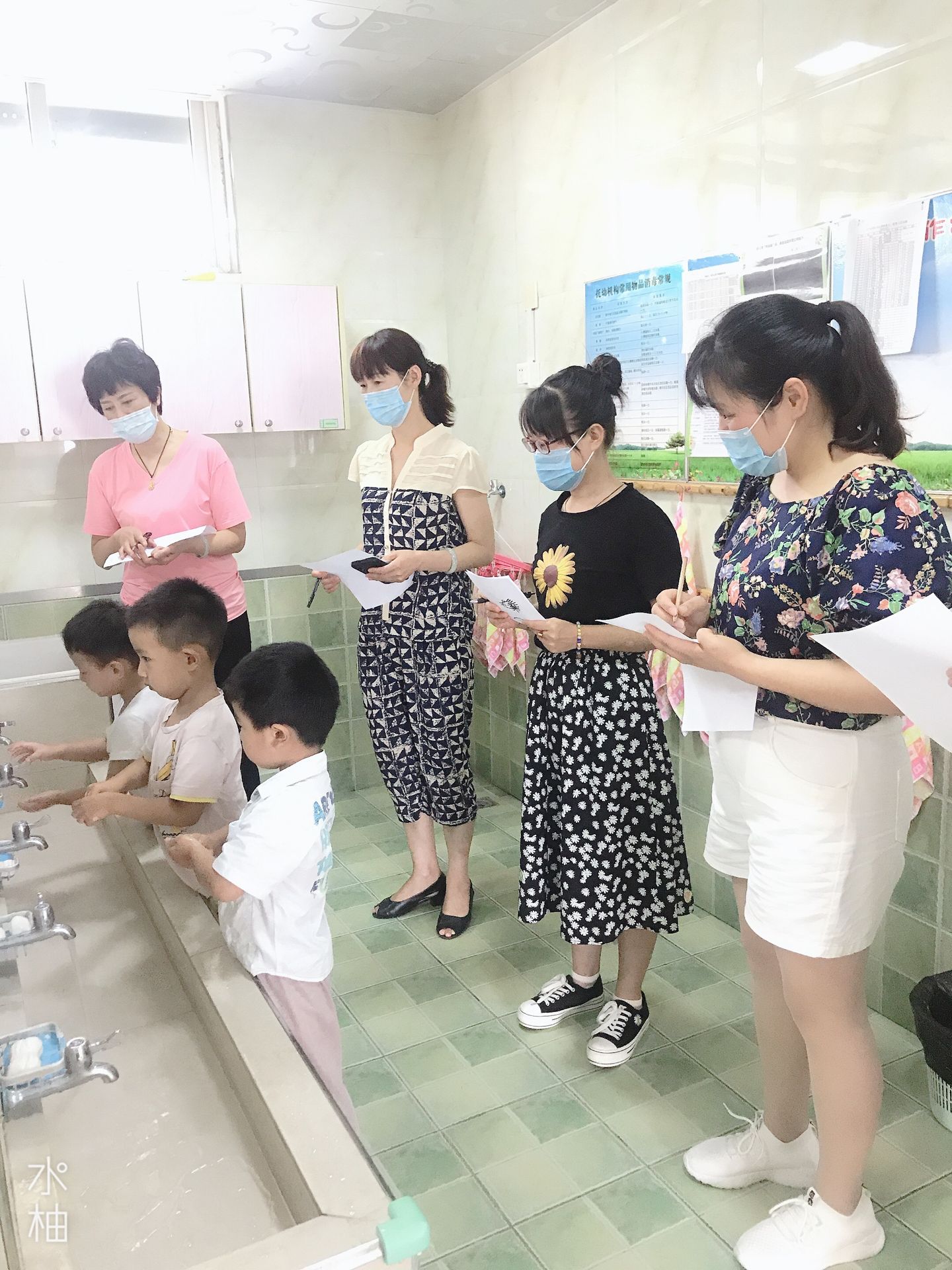 评委们也认真、负责的给每个孩子打分,并对每个班的洗手情况进行小结、评价。