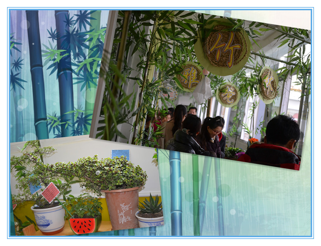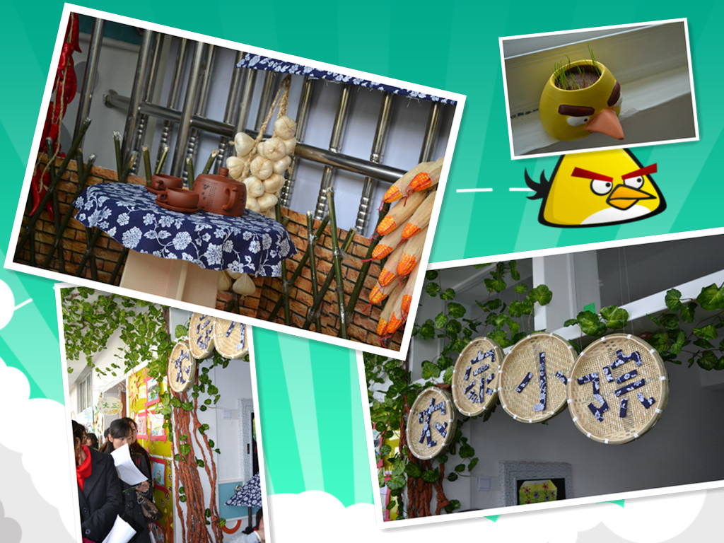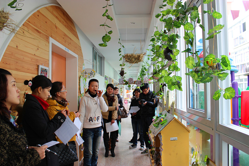 整个活动共分为准备阶段、评比阶段、展示阶段三个部分。活动初期,陈娟园长对全体教师展开了深入的《自然角创设与管理》专题讲座,随后对全园环境进行了整体规划,确定了“翠幼之春”创设主题,老师们围绕这一主题开创了三大自然景观,处处展现出了生机勃勃的景象:一楼的“春意满园”以栅栏和藤蔓为背景,呢喃的燕子,筑巢的小鸟,可爱的土拨鼠,蹦跳的小白兔,让孩子们充分感受了自然界的多姿多彩;二楼的“生态竹韵”处处竹叶茂盛,伴着春风发出“沙沙” 的声音让人恍惚置身于清脆的竹林,家长与幼儿一起制作的竹子工艺品琳琅满目,以竹筒为花盆别出心裁,种以富有生命力的植物,让人时刻感受大自然旺盛的生命力;三楼的“翠幼农庄”则用藤、草、蓝印花布为点缀呈现出一派农家风味,投放的锄头、草帽、自制镰刀等“农”味十足的工具调动了孩子们参与自然角管理的积极性和主动性。