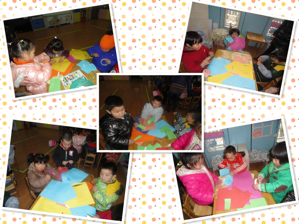 要先给小鸟做一对翅膀,还有尾巴,它才可以飞呀!看看宝宝们做的可认真啦!