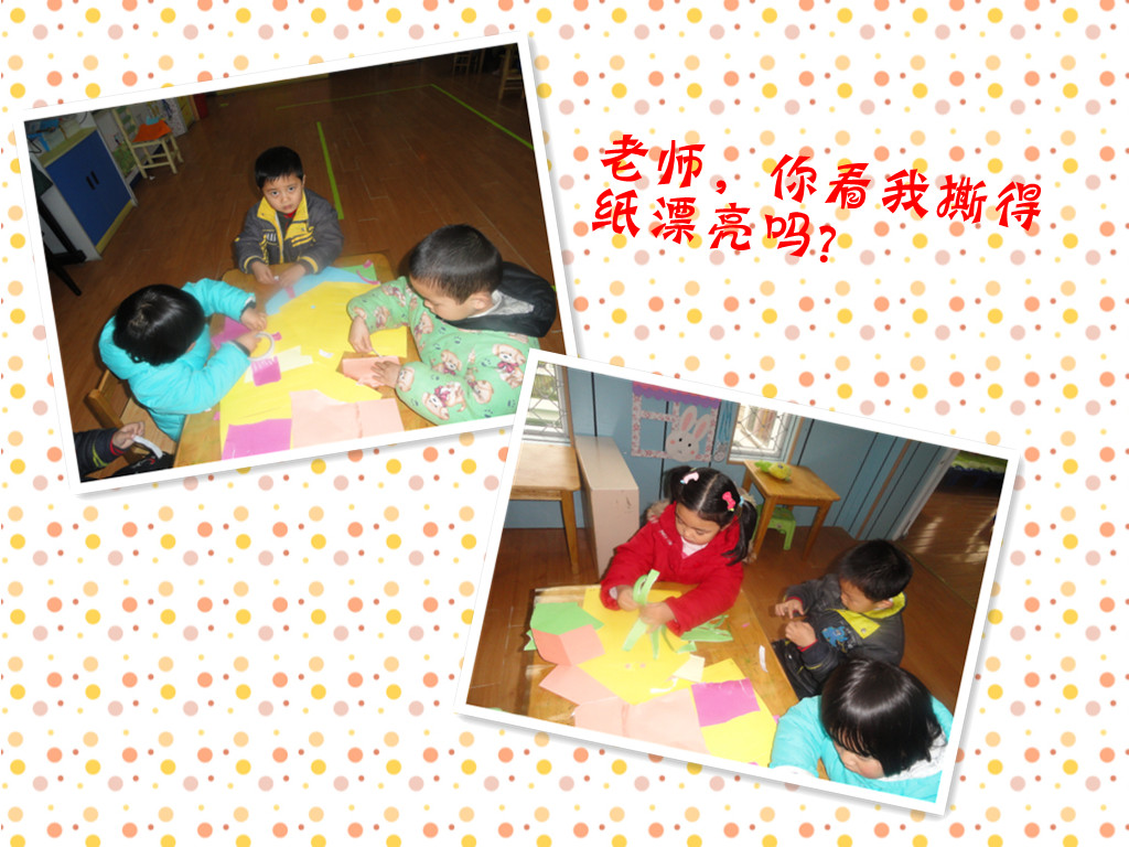 宝宝们自己动手撕,还真不错呢!现在连双面胶都难不倒我们了!