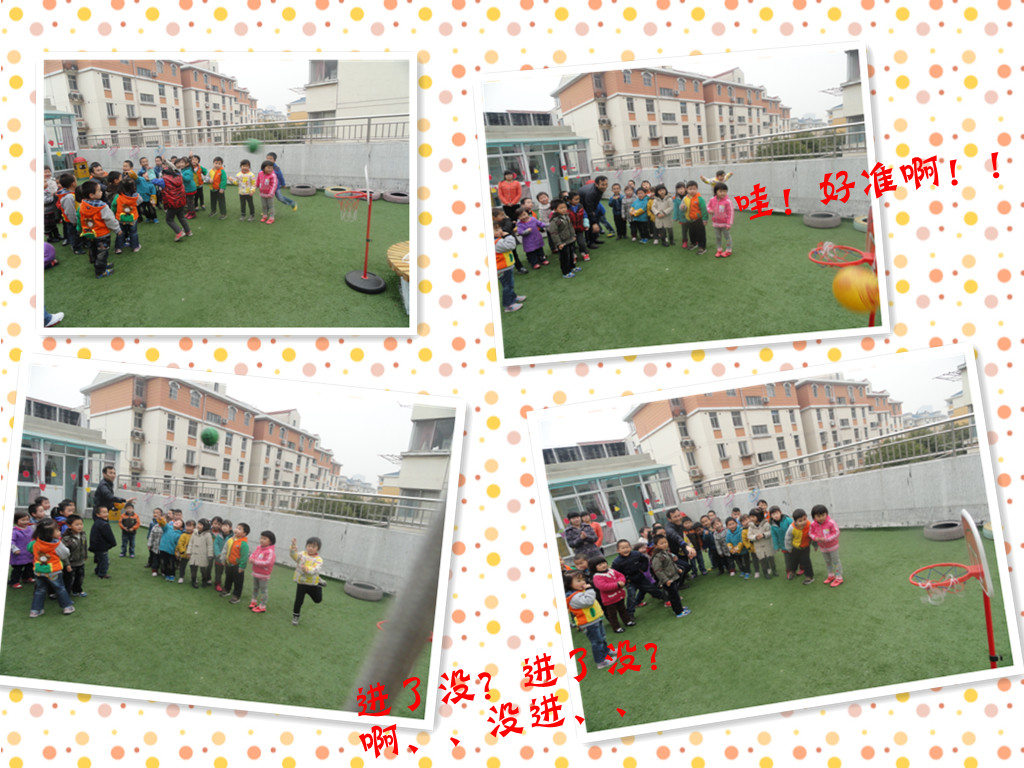 终于孩子们排好队啦,澳爸开始发号施令了!哦,原来我们的目标就是这个篮筐呀!澳爸要教我们宝宝投篮呢,来看看我们班宝宝的表现如何吧!