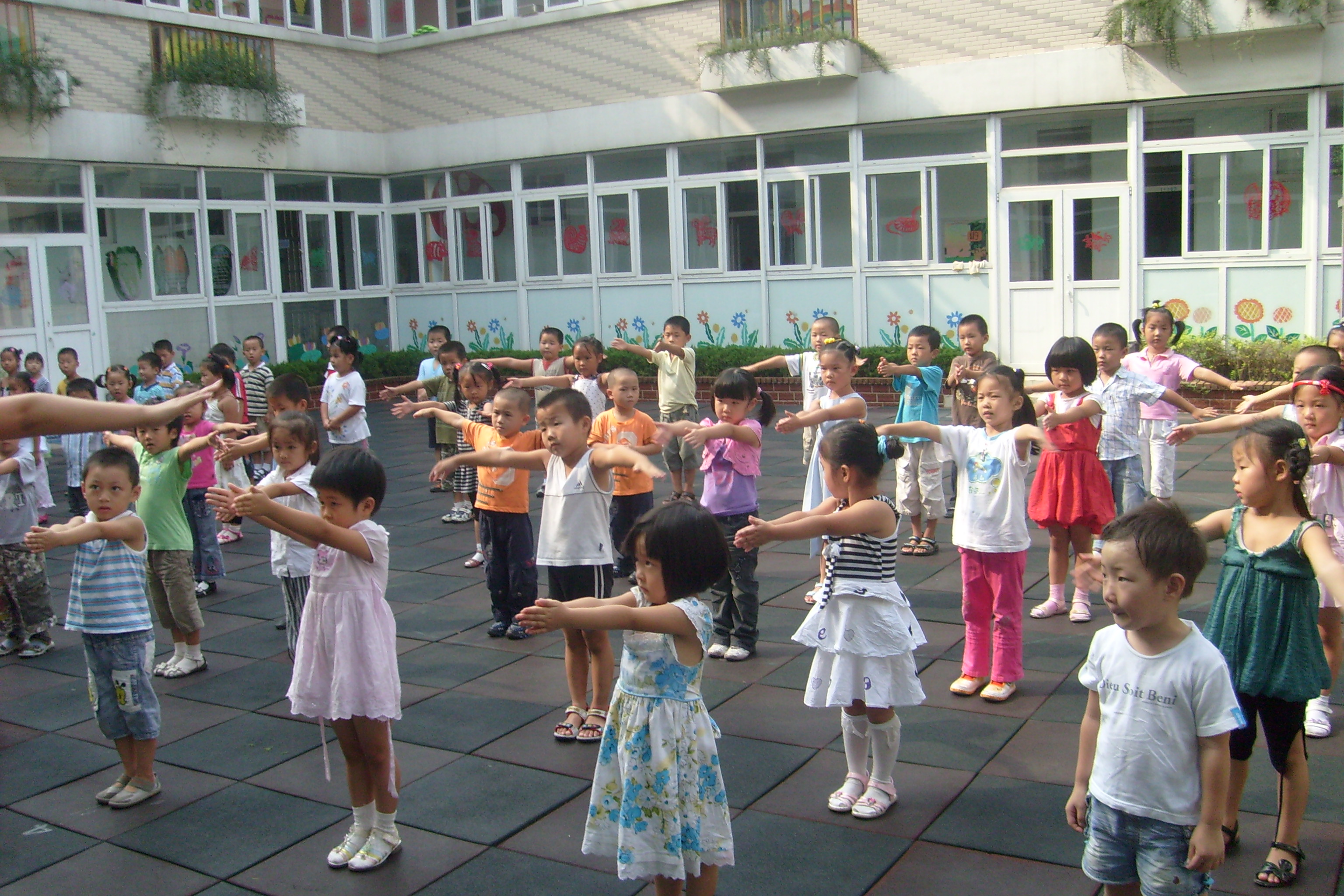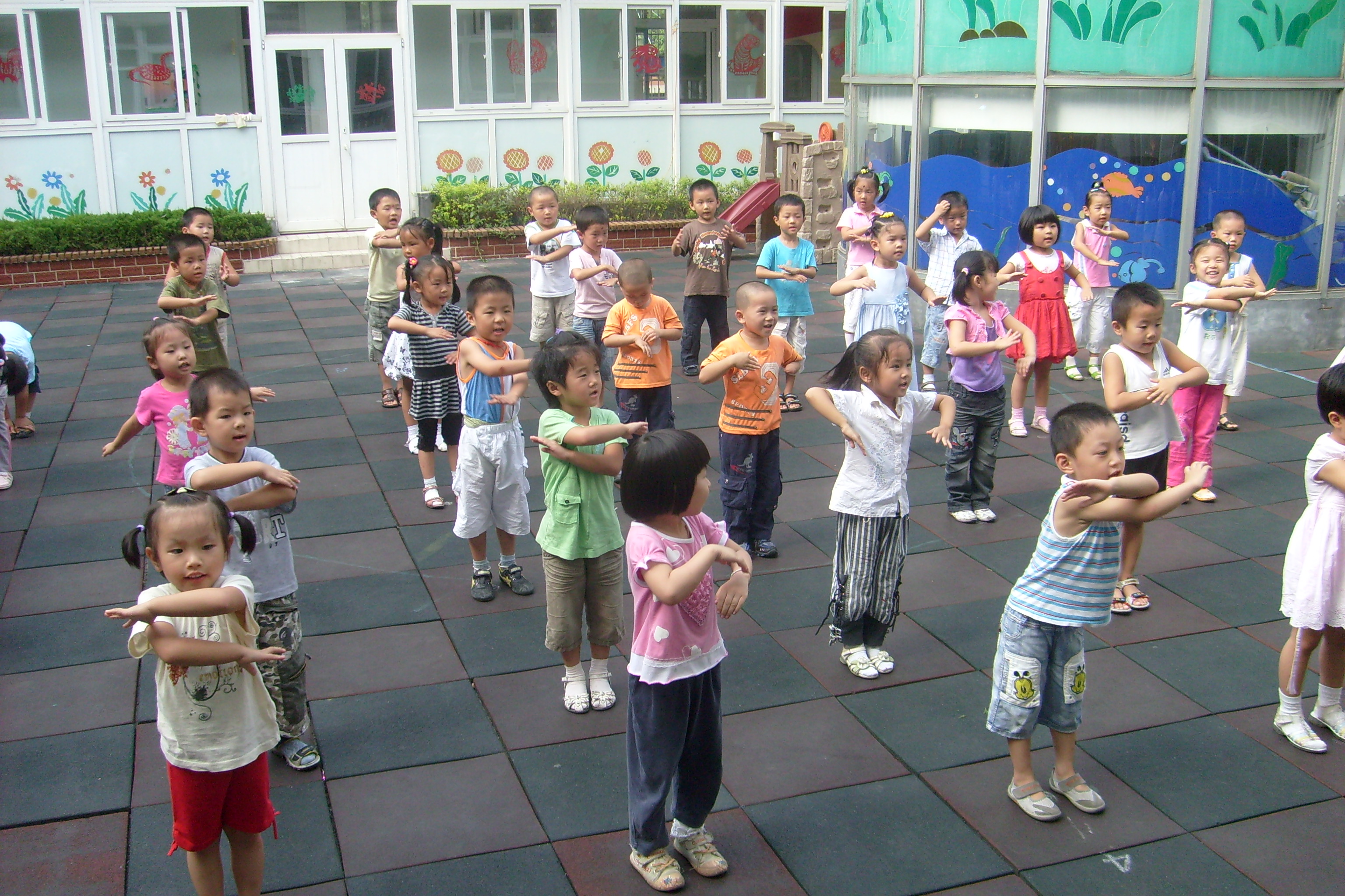 升入中班,要学习新操了,我们学的都很认真哦!(2008年9月)
