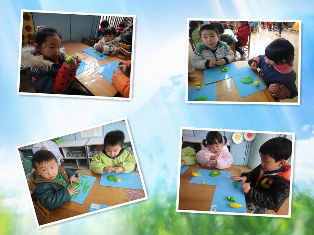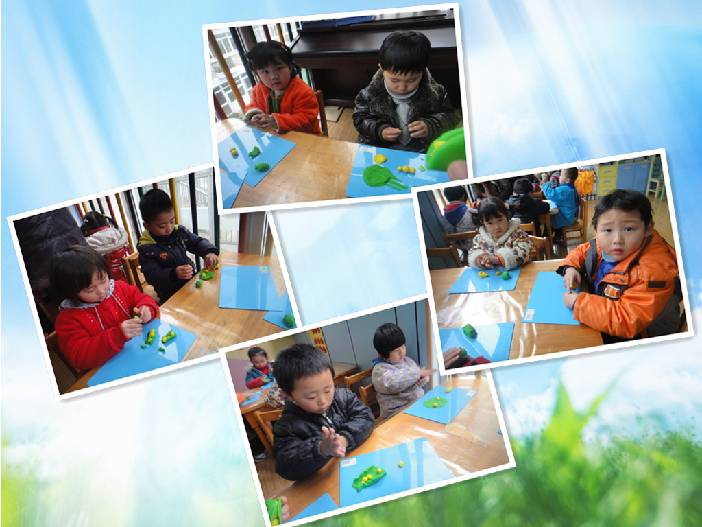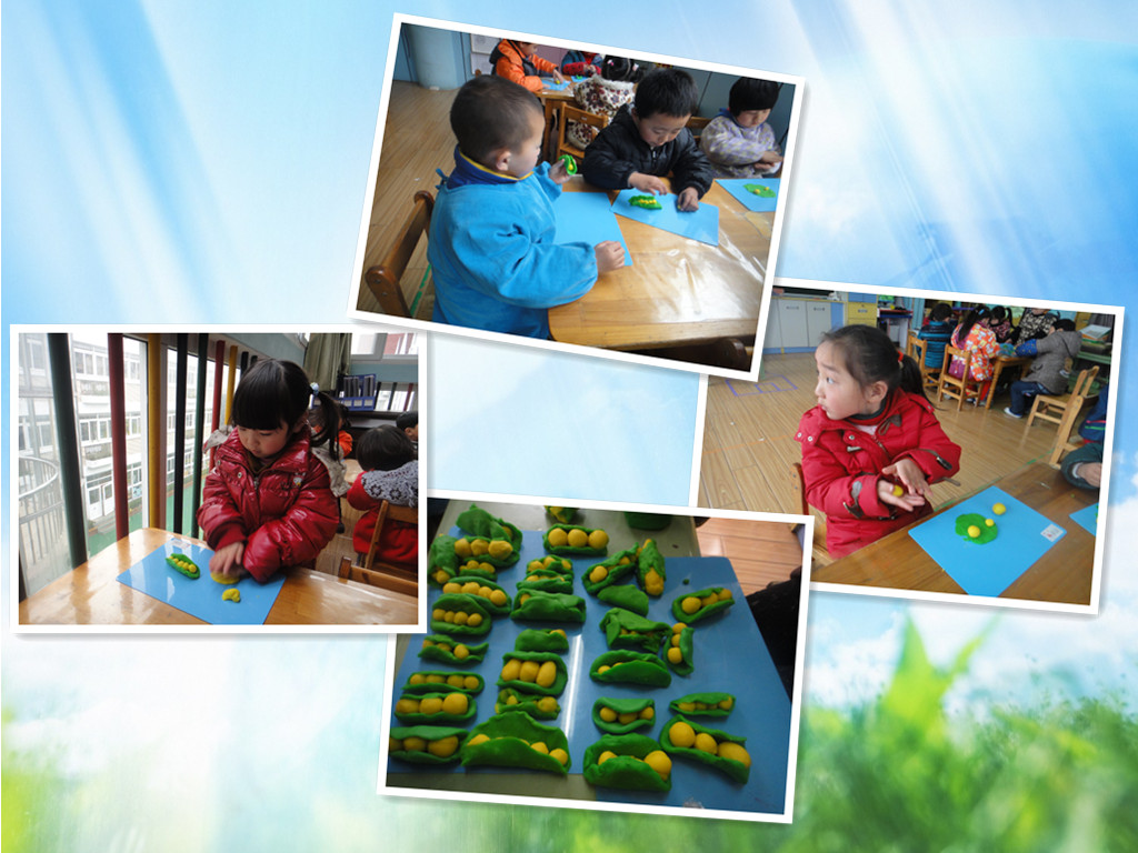 今天老师教我们学习了一个新的本领:用油泥做“豌豆”。