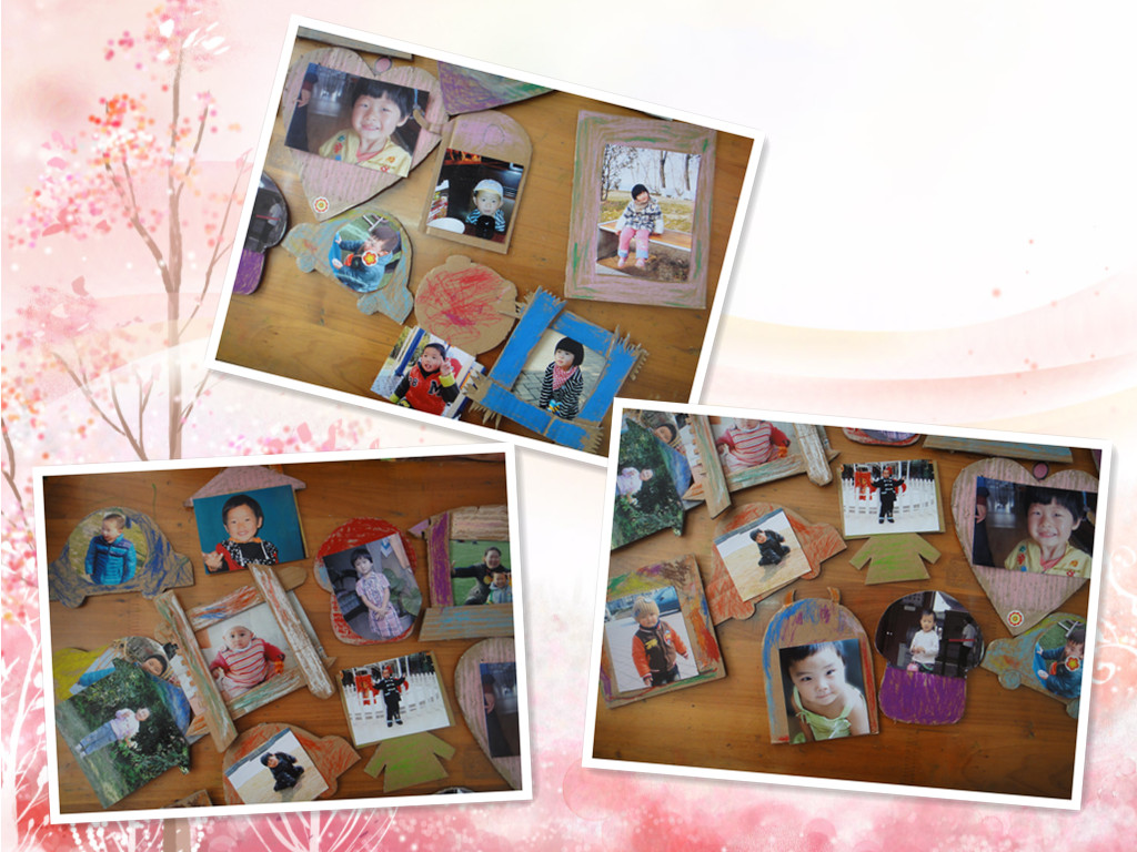 我们开始动手啦!给相框涂上好看的颜色哦!再把照片贴上去!