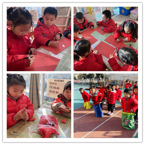 游园活动在热闹的袋鼠跳中正式拉开了序幕,小朋友还用剪纸亲手剪了牛的造型,制作了油泥糖葫芦。整个活动热闹非常,小朋友们还和自己的好朋友交换了新年礼物,说了新年的祝福。