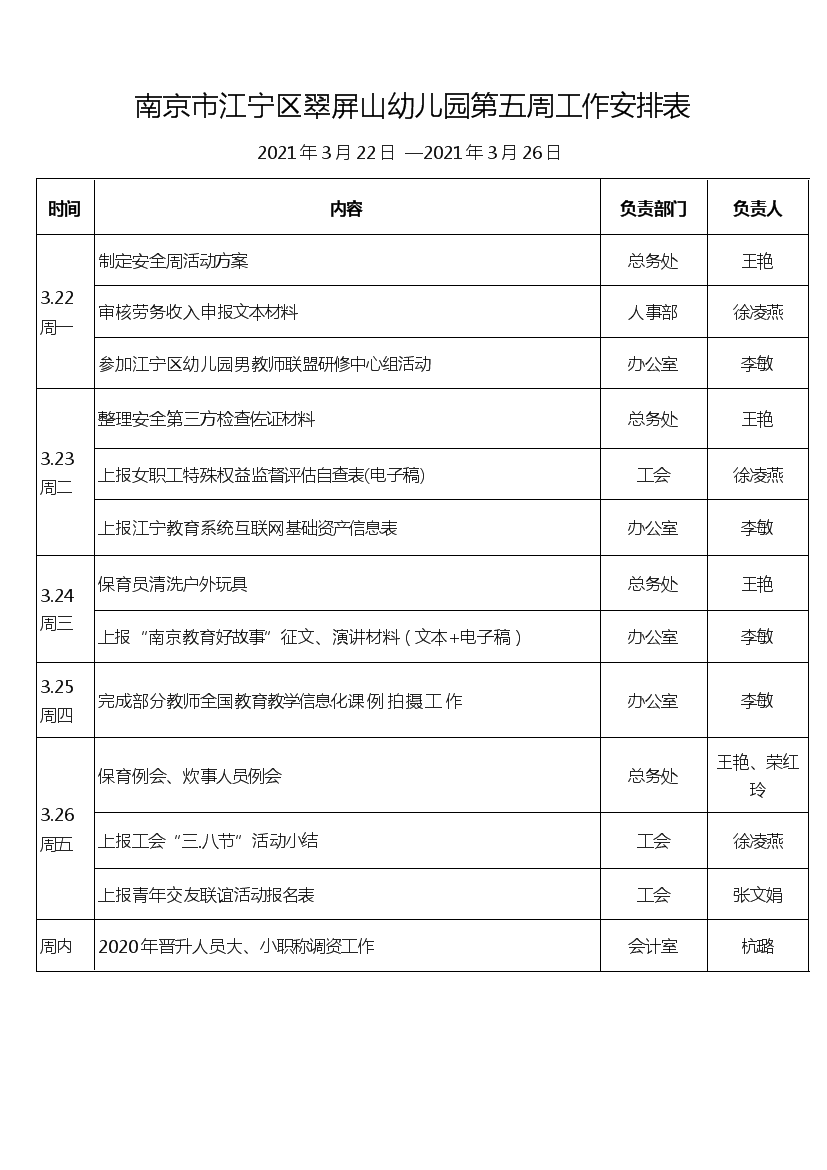 下一篇南京市江宁区翠屏山幼儿园第六周工作安排表