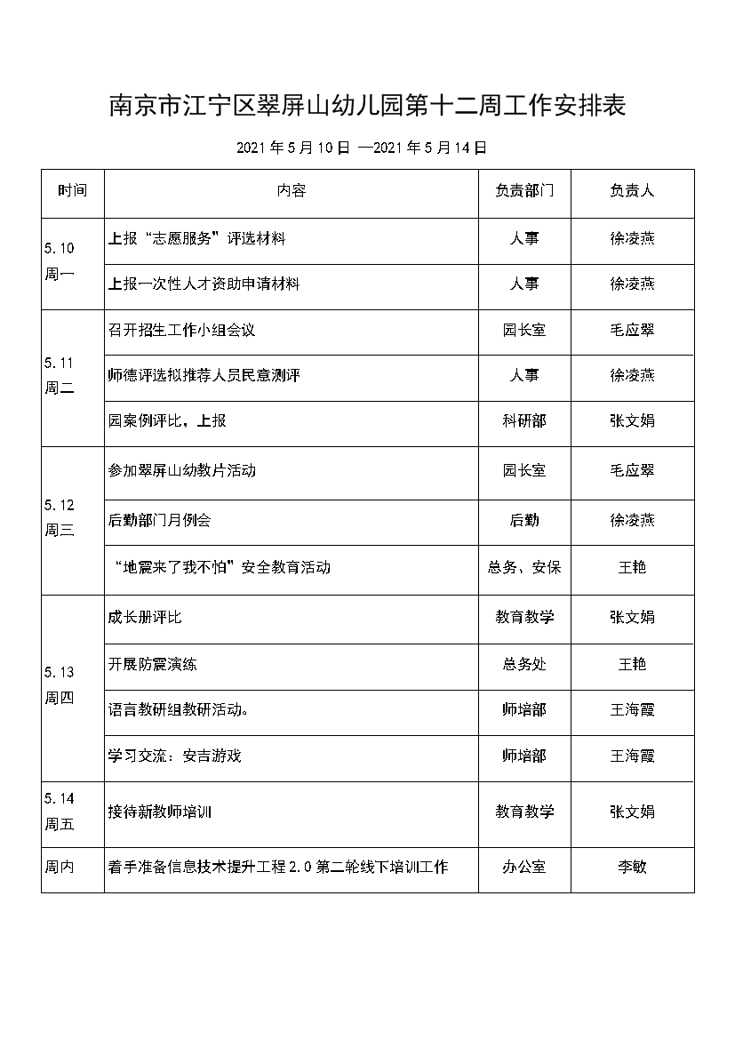 下一篇南京市江宁区翠屏山幼儿园第十三周工作安排表