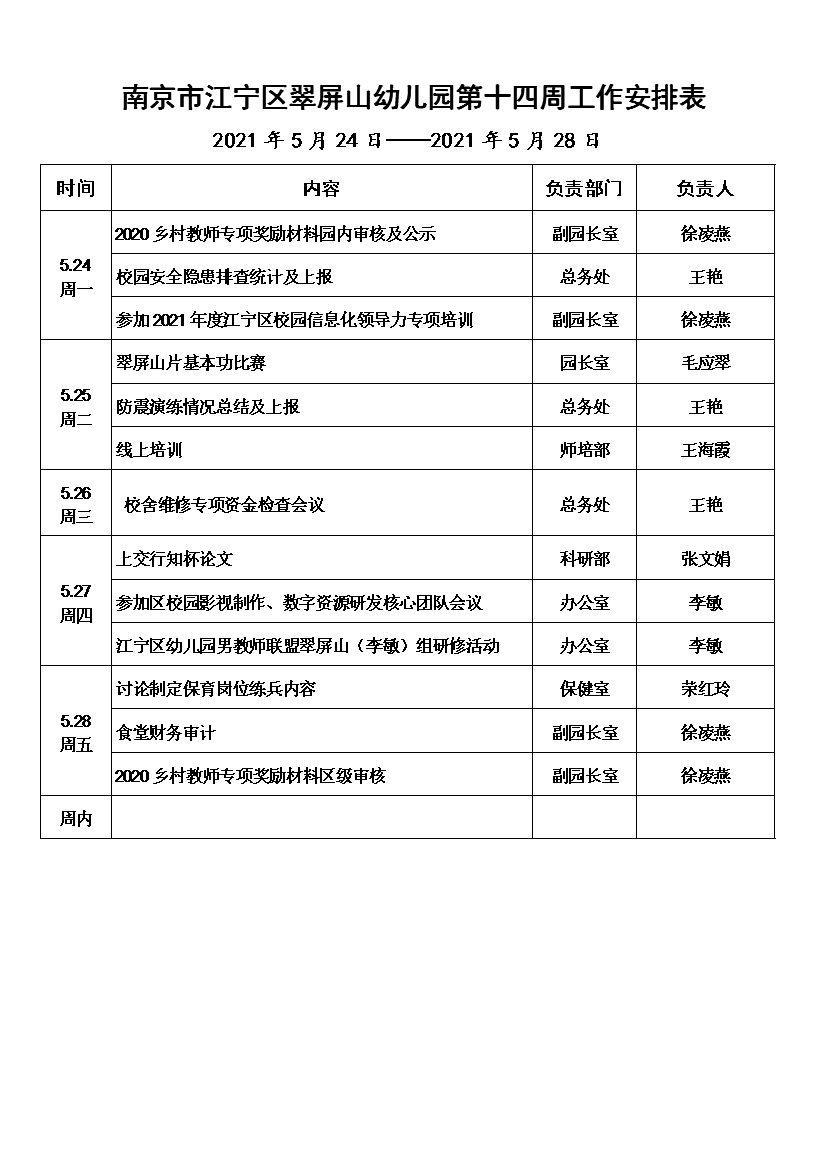 下一篇南京市江宁区翠屏山幼儿园第十五周工作安排表