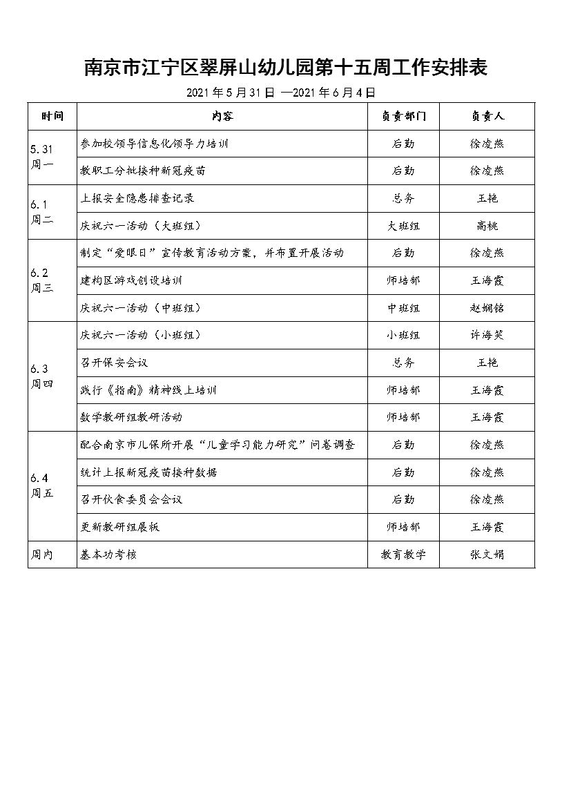 下一篇南京市江宁区翠屏山幼儿园第十六周工作安排表