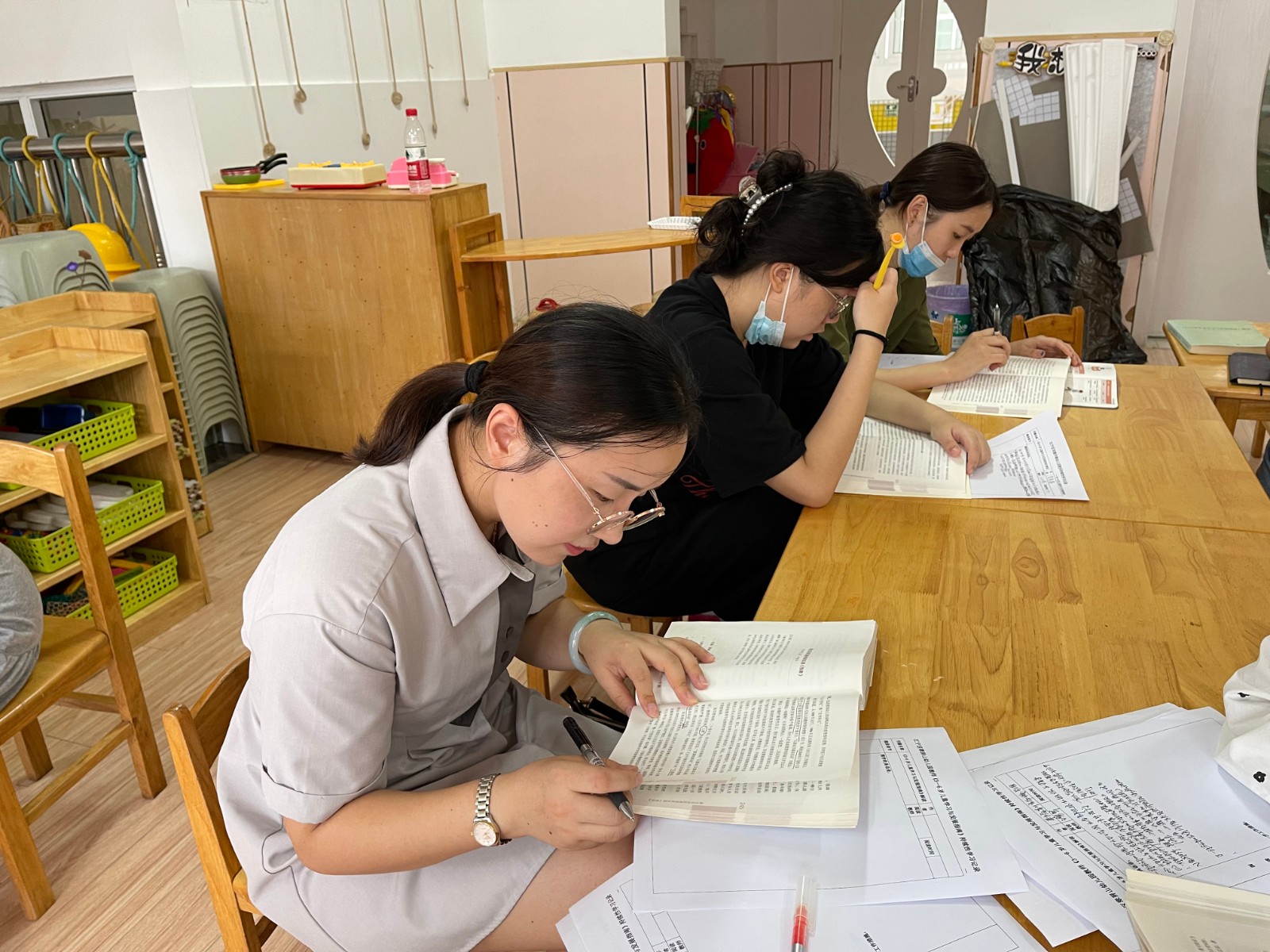 9月7日上午,全体教师们又继续开展了主题为《指南》解读沉浸式再阅读,对书中“《活动区活动中的学习与指导》、《集体教学活动中的学习与指导》”章节的仔细阅读和琢磨,老师们主动提交手机,完全地专注地沉浸在书本里。老师们更清楚在今后的一日生活中,如何在《指南》精神下对幼儿的游戏进行观察、介入、评价。老师们纷纷也提出了“材料超市”使用时的困惑,“材料超市”是移动的还是固定的?这些都引起了老师们的思考,相信此次阅读活动后,老师们会学会用更专业的眼光和孩子们在新学期共同成长。