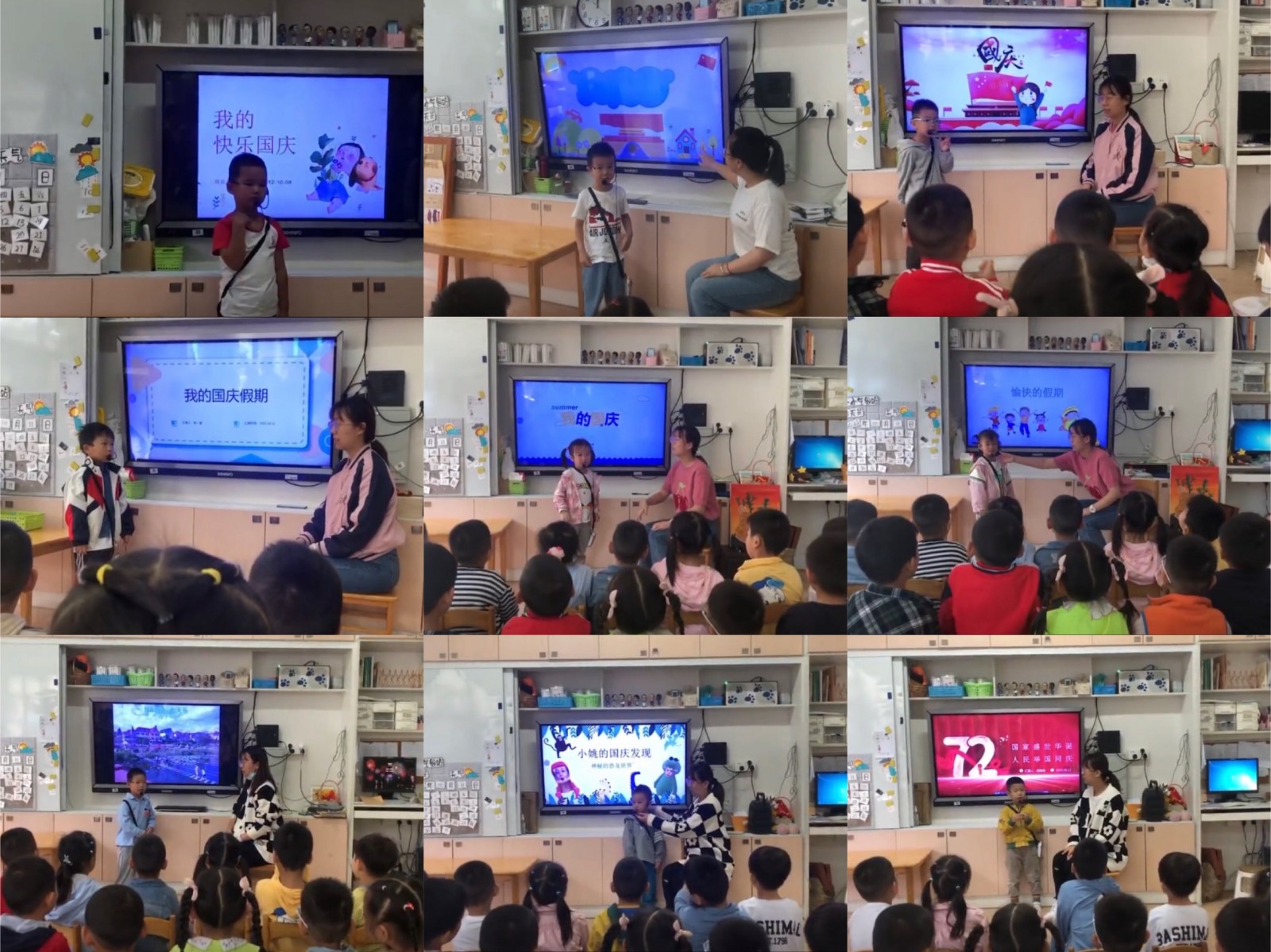 进入中班,孩子们的语言表达能力都有增强,很希望在同伴面前分享自己的趣事,于是我们班开展了自主播报的活动,让孩子们能勇敢的在集体面前进行表达,大胆自信的分享自己的经历的趣事、节日播报、绘本介绍等等,瞧一瞧孩子们的精彩瞬间吧!